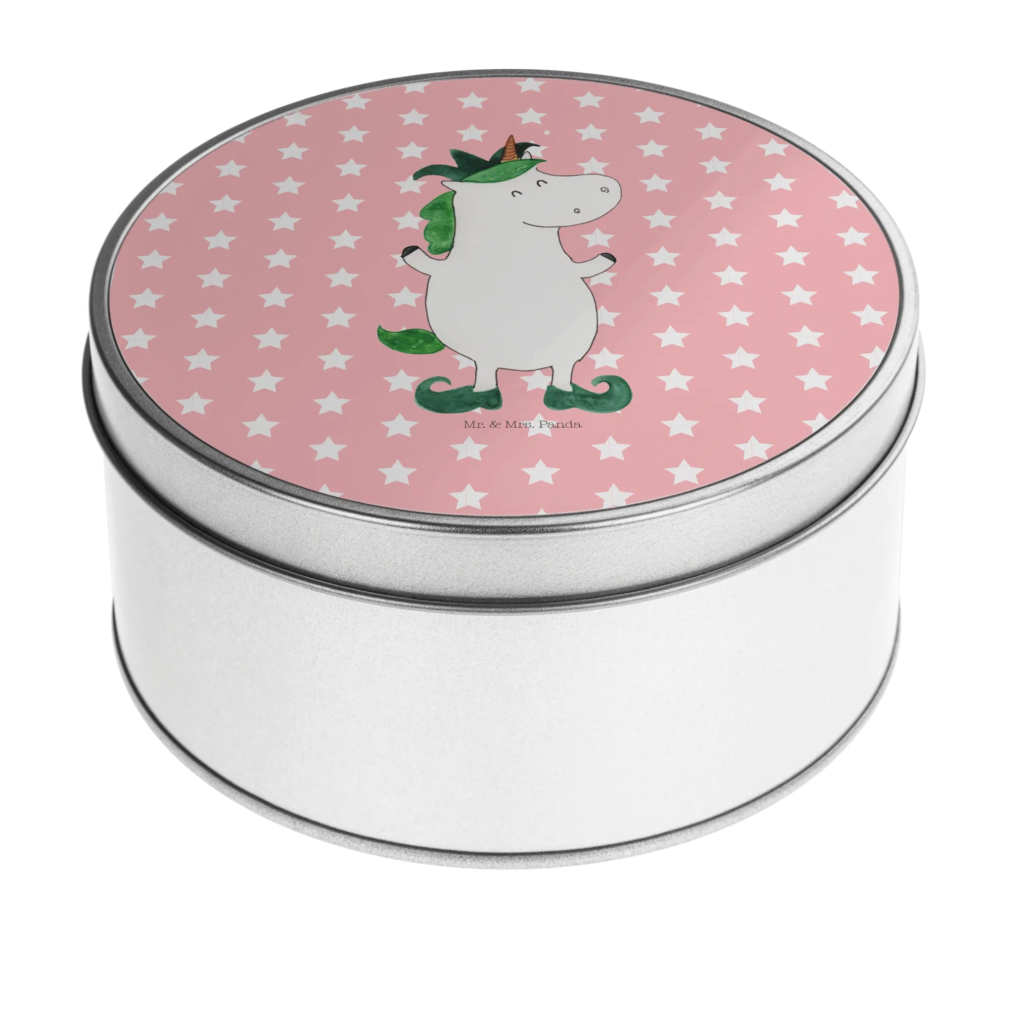 Die runde Blechdose Einhorn Joker von Mr. & Mrs. Panda ist das perfekte Geschenk für alle, die die zauberhafte Welt der Einhörner lieben! Mit ihrem Durchmesser von 150 mm und einer Höhe von 150 mm bietet diese hochwertige Metallbox genügend Platz für Kekse, kleine Schätze oder auch als wunderbare Aufbewahrungsmöglichkeit für Erinnerungen.