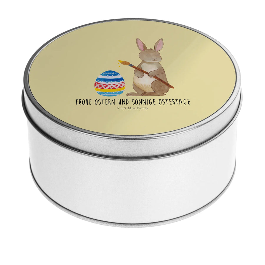 Die Dose ist aus hochwertigem Metall gefertigt und in einem glänzenden Gelb-Pastell gehalten. Sie trägt das süße Motiv eines Osterhasen, der stolz ein großes Osterei mit den schönsten Farben bemalt. Die liebevollen Designs von Mr. & Mrs. Panda bringen die Osterfreude direkt zu dir nach Hause! Mit dem Slogan "Frohe Ostern und sonnige Ostertage" wird jeder Beschenkte begeistert sein. Egal ob für Freunde, Familie oder Kollegen, diese Dose ist das ideale Ostergeschenk.