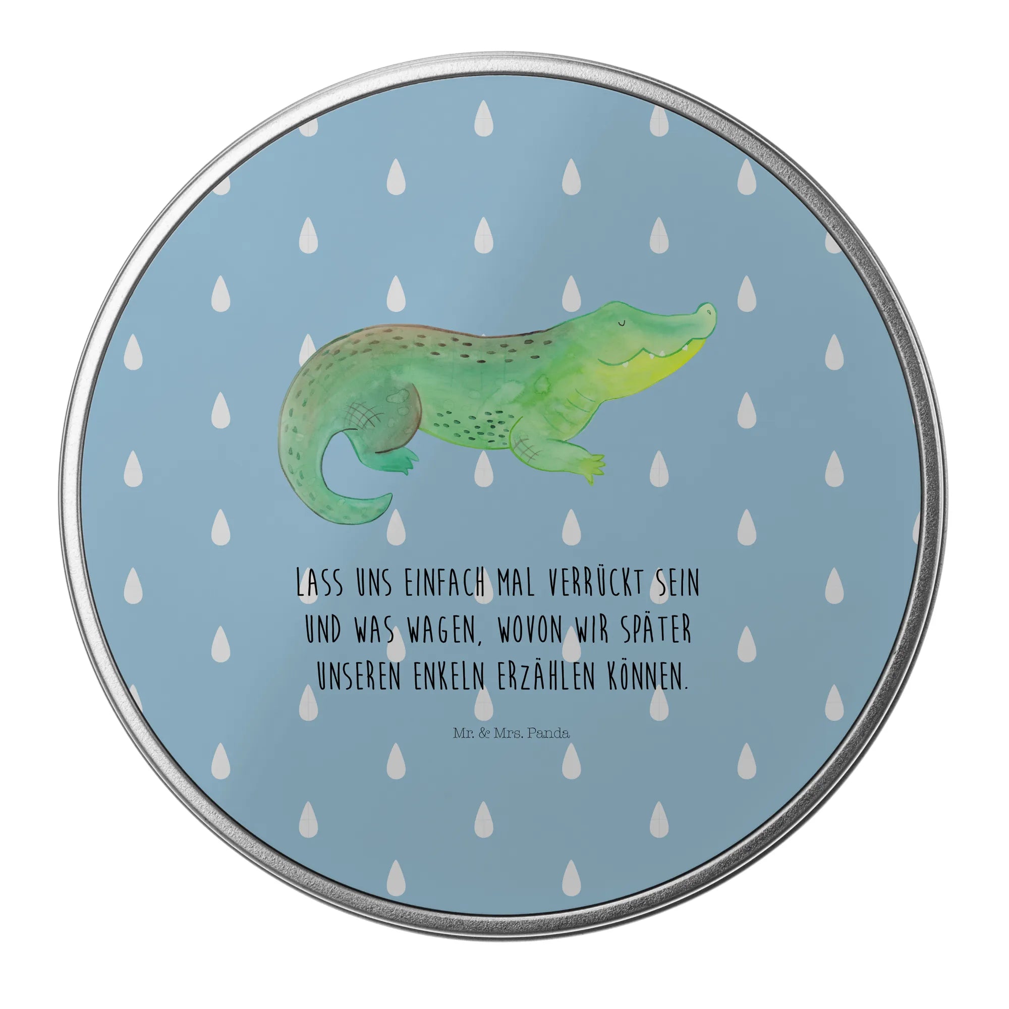 Entdecke die wunderschöne runde Blechdose Krokodil aus der bezaubernden Meerestiere Kollektion von Mr. & Mrs. Panda!