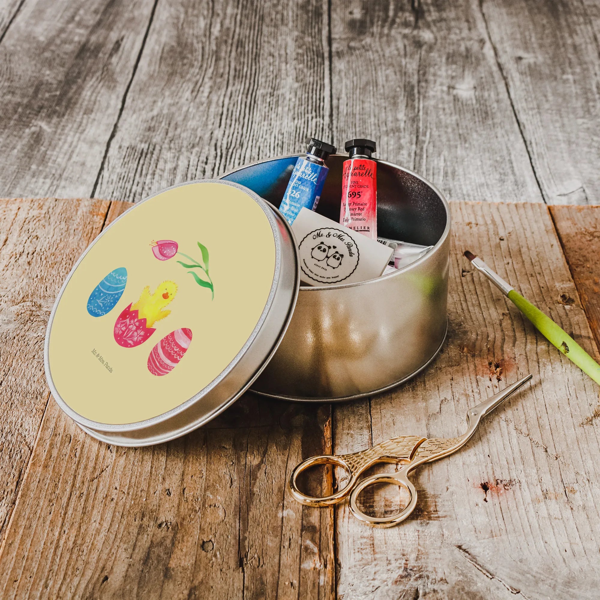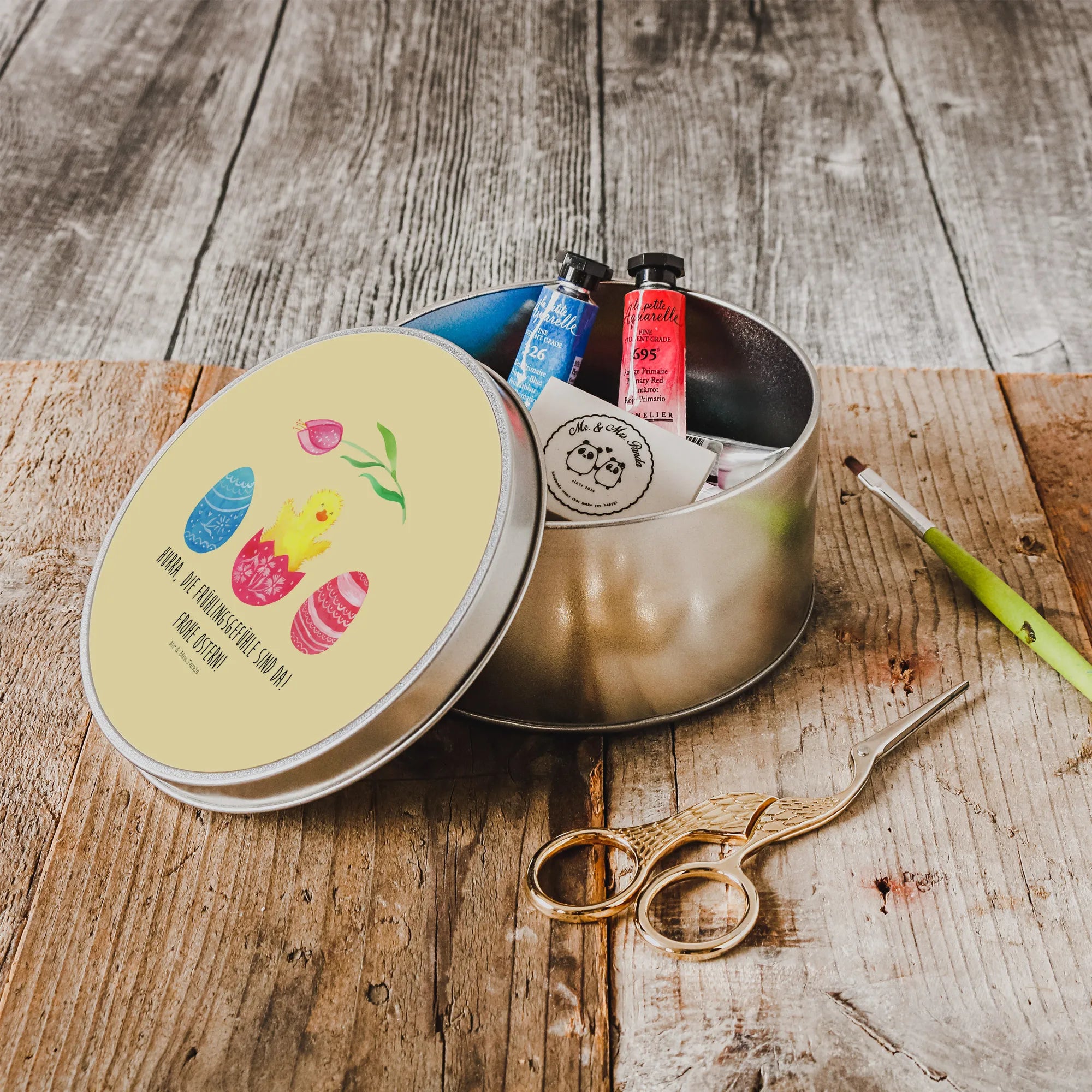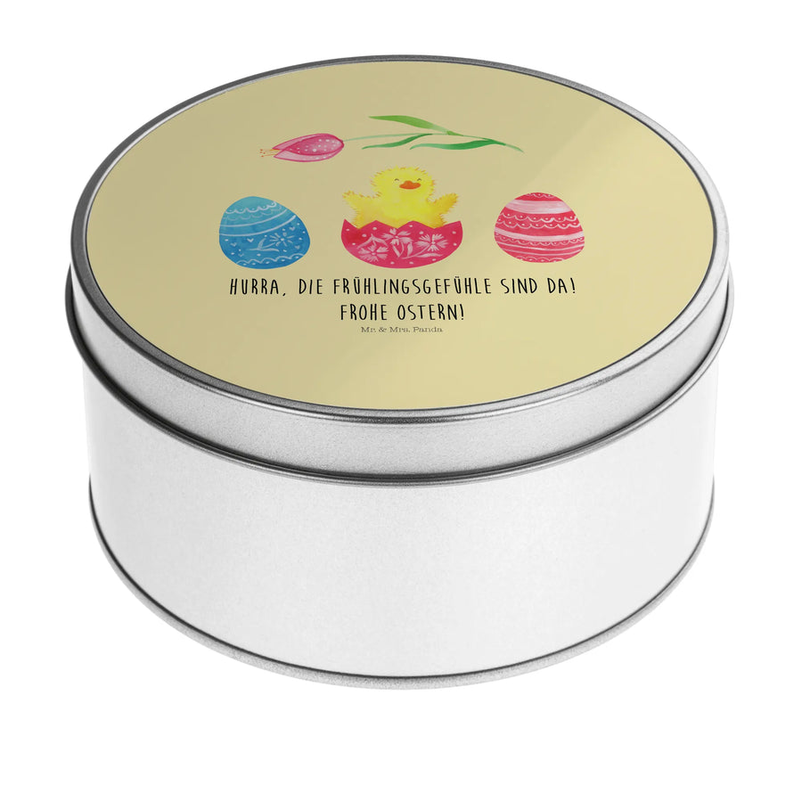 Entdecke die zauberhafte runde Blechdose "Küken geschlüpft" aus der Ostern-Kollektion von Mr. & Mrs. Panda! Diese wunderschöne Dose ist nicht nur ein echter Blickfang mit ihrem fröhlichen Küken-Motiv und den strahlend bunten Farben, sondern auch die perfekte Aufbewahrungslösung für deine selbstgebackenen Kekse oder kleine Ostergeschenke.