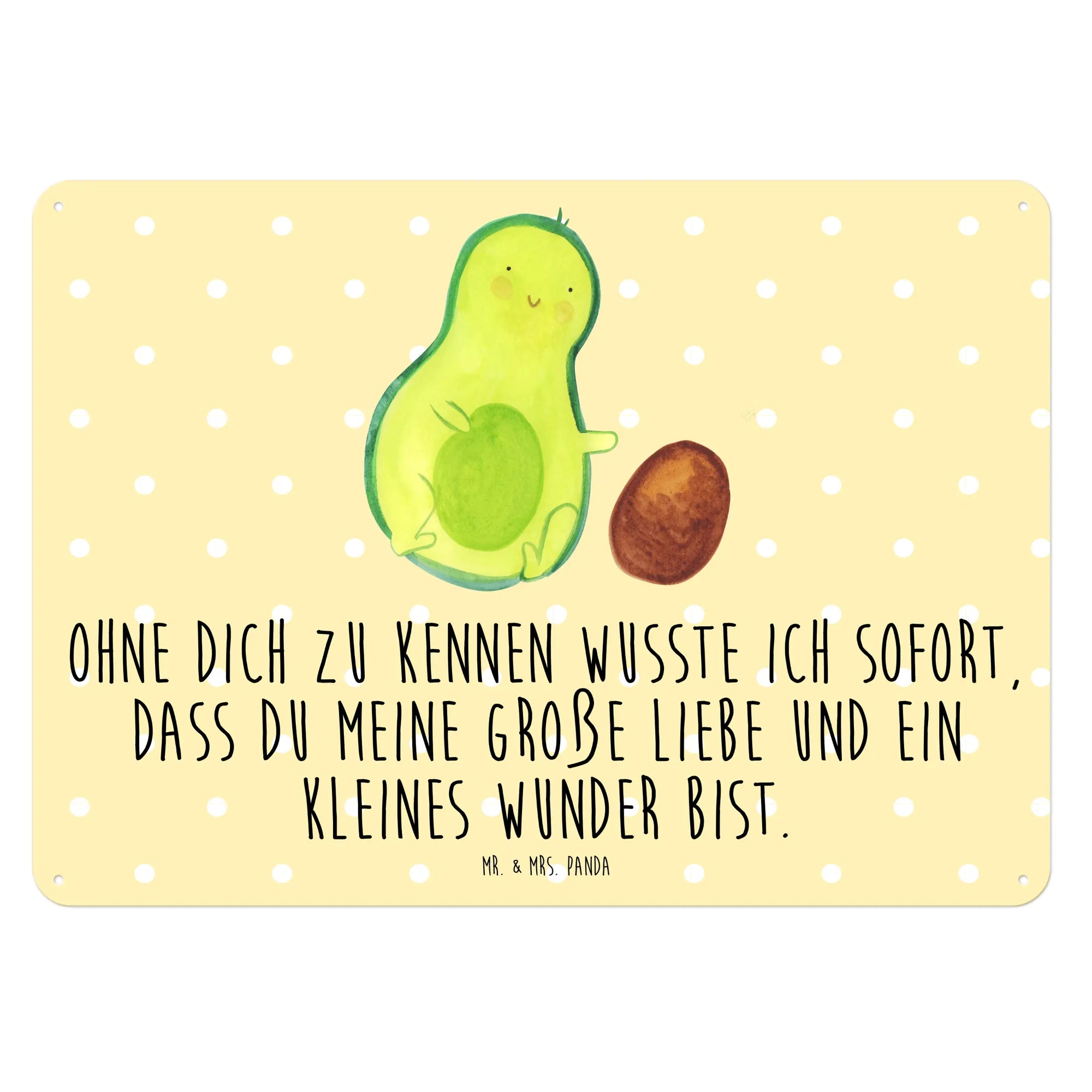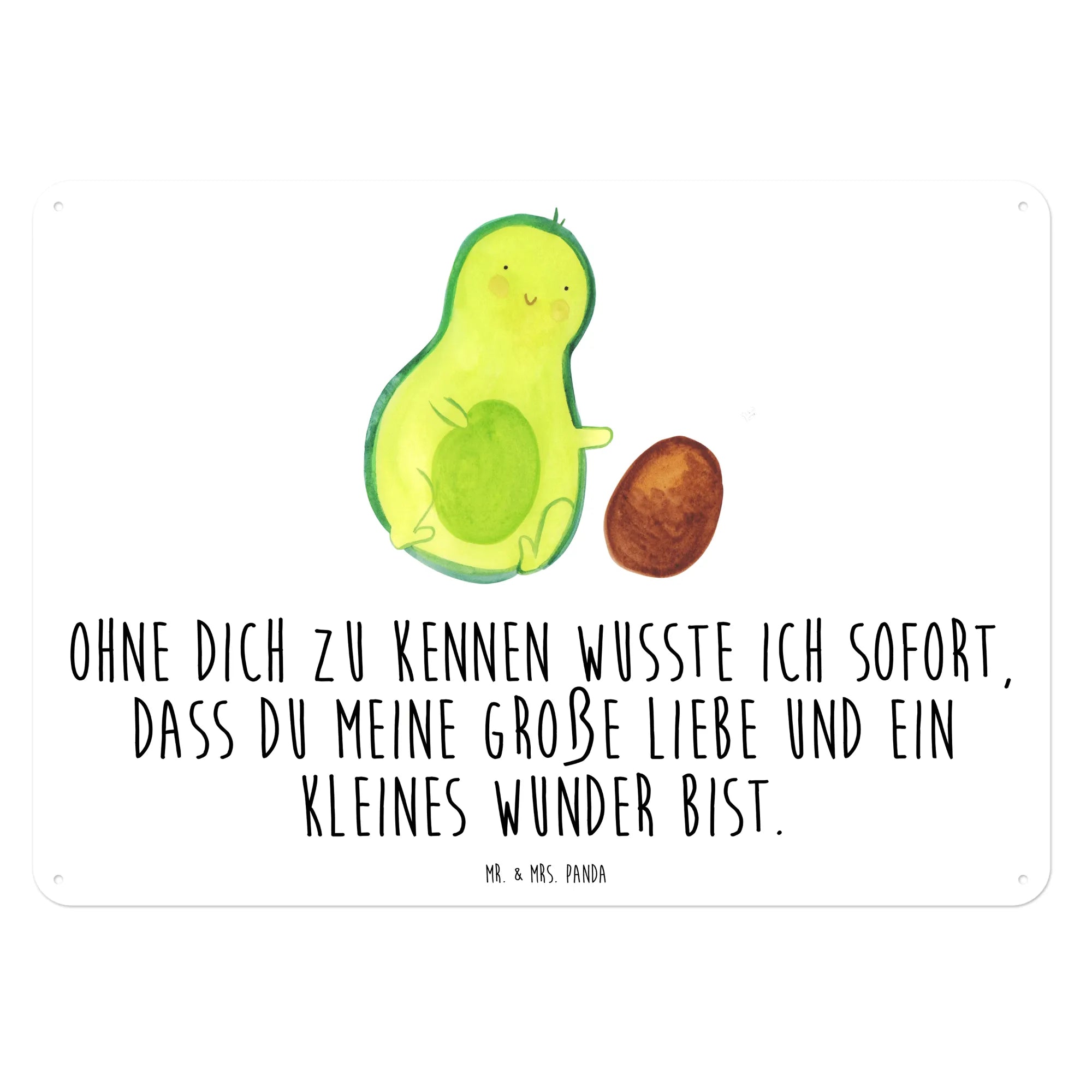Hol dir jetzt das "Avocado rollt Kern" Blechschild von Mr. & Mrs. Panda und lass die Freude in Dein Zuhause einziehen! Hilf dabei, die großen und kleinen Wunder des Lebens zu feiern!