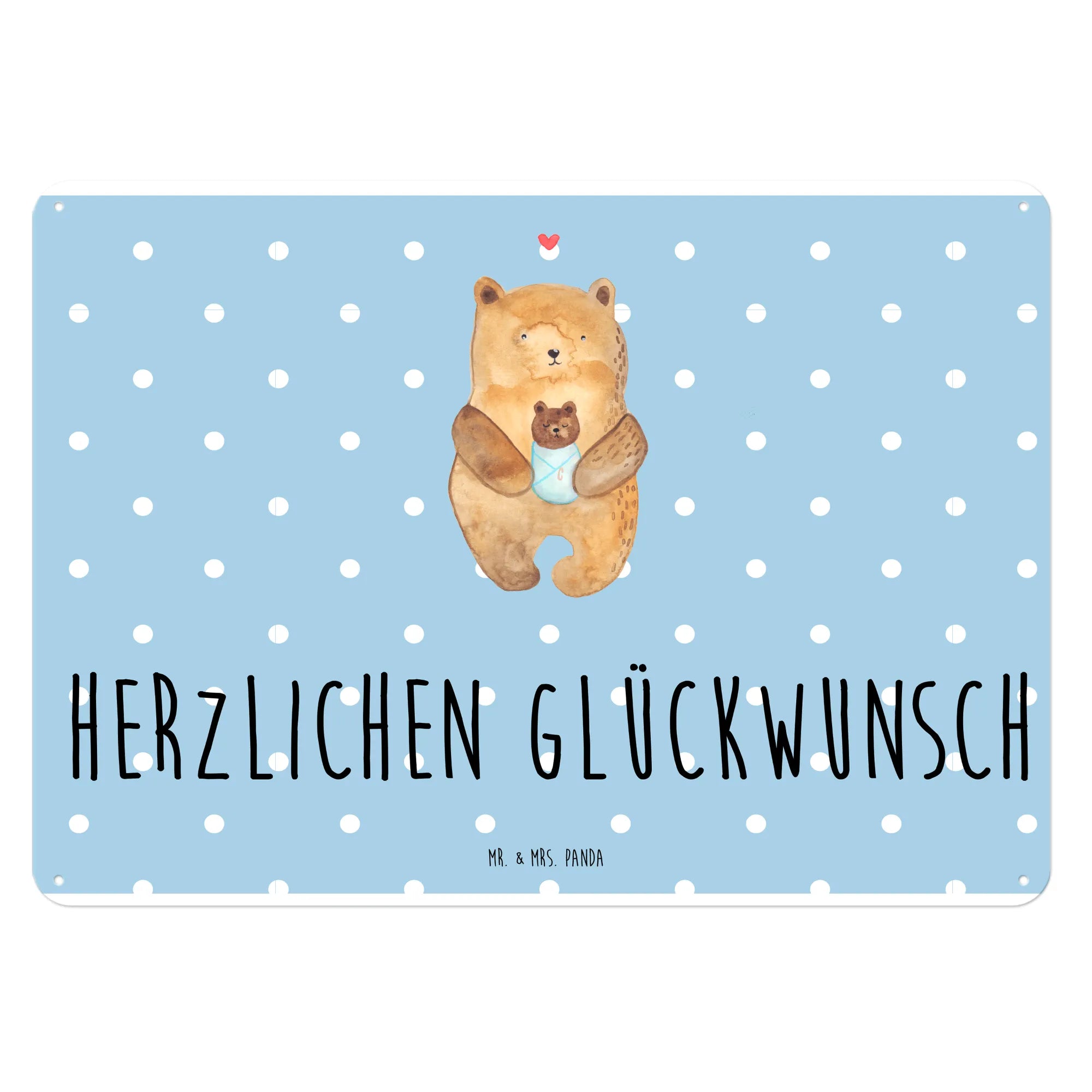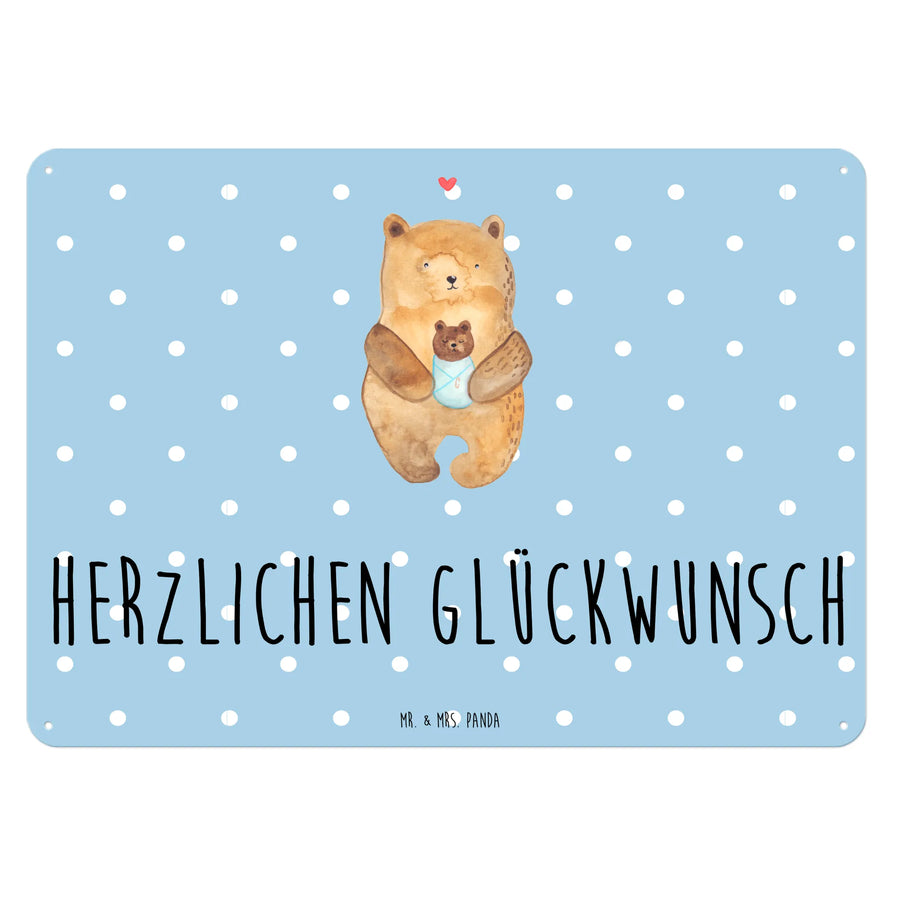Suchst du das perfekte Geschenk für frischgebackene Eltern, Tauffeiern oder Geburtstagsfeiern? Dann ist unser edles Blechschild "Bär mit Baby" von Mr. & Mrs. Panda genau das Richtige für dich! 🐻💖