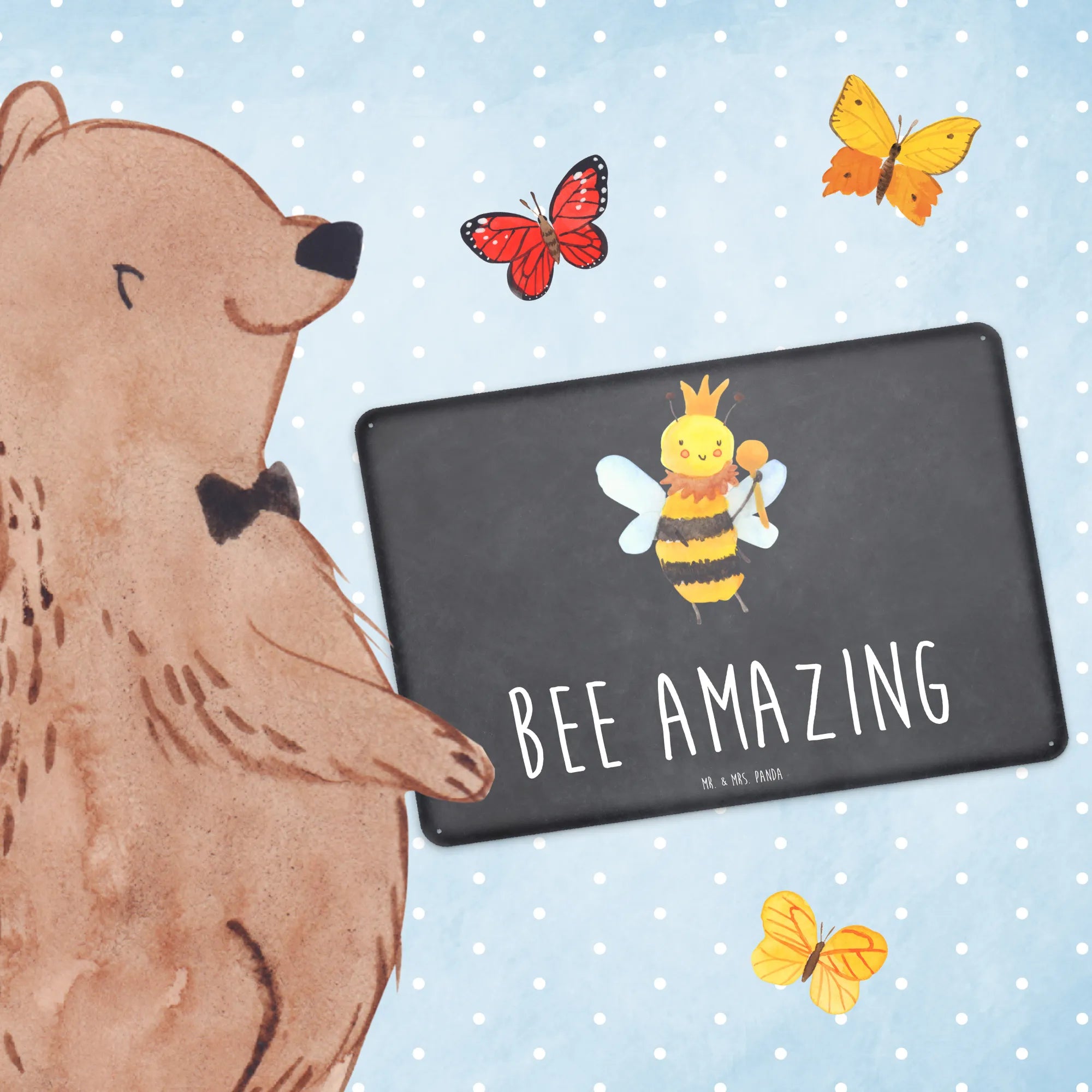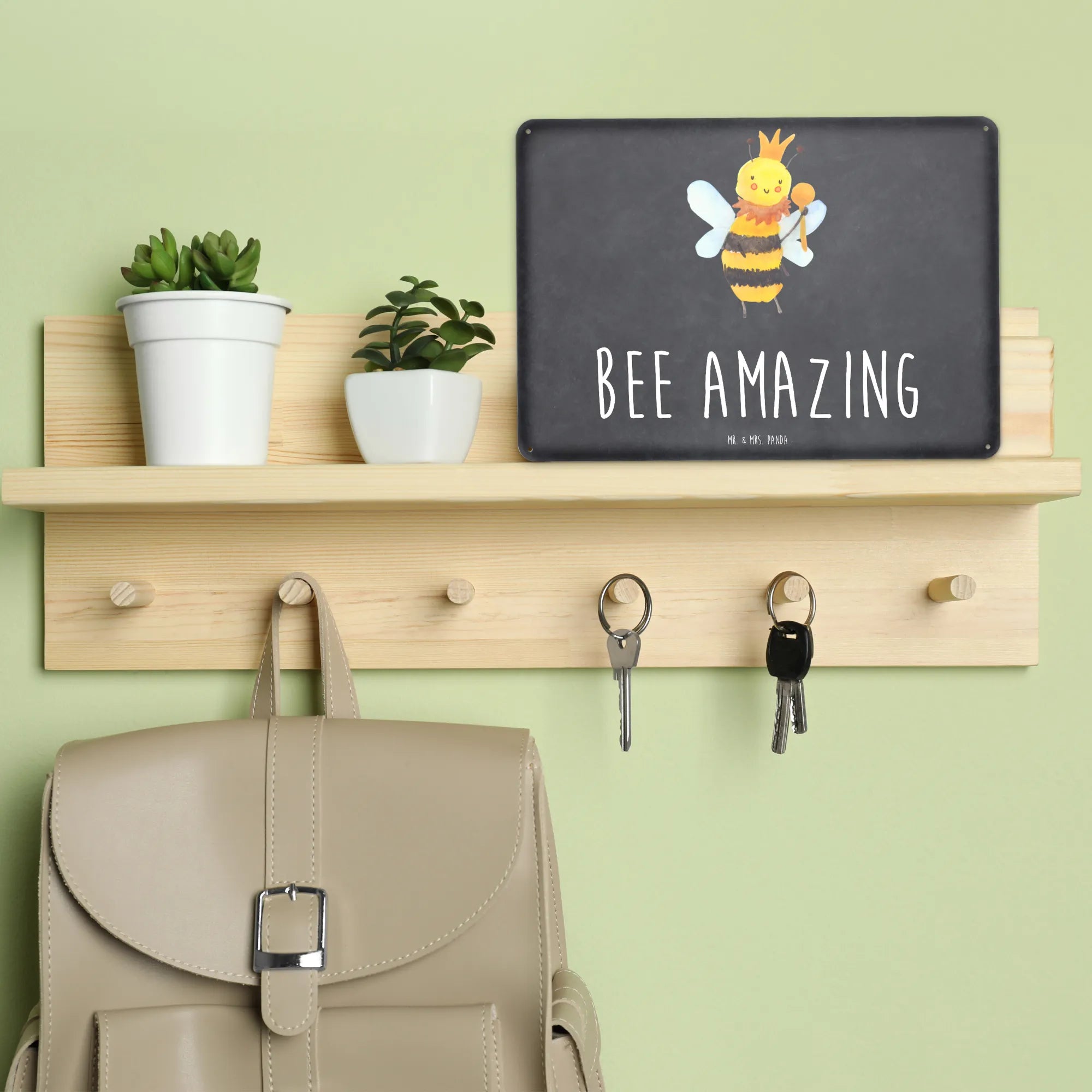 Entdecke das wunderbare Metallblechschild "Biene König" aus der exklusiven Bienen-Kollektion von Mr. & Mrs. Panda! Dieses charmante Schild wird alle Imker und Natur-Liebhaber begeistern. Mit einer süßen Biene, die stolz mit Krone und Zepter posiert, versprüht das Schild Lebensfreude und zeigt deine Liebe zur Natur. Der liebevoll gestaltete Spruch 'Bee amazing' macht das Schild zu einem echten Hingucker und bringt Freude in jedes Zuhause.