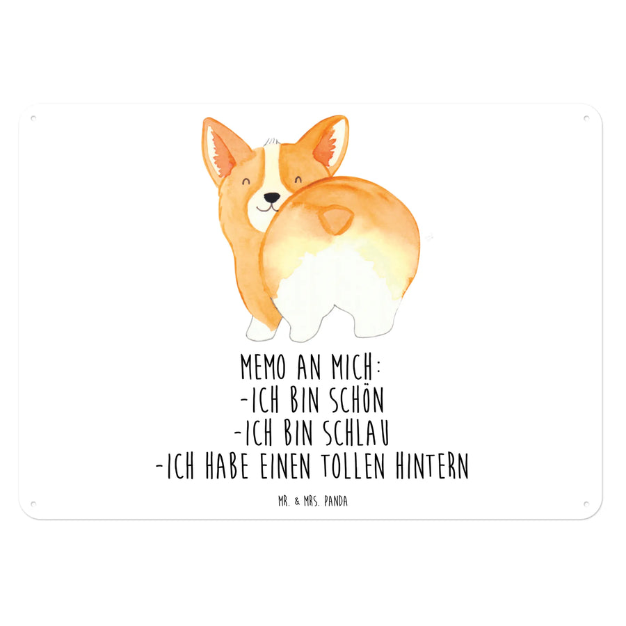 Das wunderschöne Blechschild mit dem Motiv "Corgie Po" von Mr. & Mrs. Panda ist das perfekte Geschenk für alle Hundeliebhaber und Hundebesitzer. Es besticht mit einem niedlichen Corgi, der seinen Po stolz in die Kamera präsentiert, und dem liebevollen Slogan: "Memo an mich: - ich bin schön - ich bin schlau - ich habe einen tollen Hintern". Dieses Schild bringt nicht nur Freude und einen Hauch von Humor in dein Zuhause, sondern eignet sich auch ideal als Wand- oder Dekoschild.