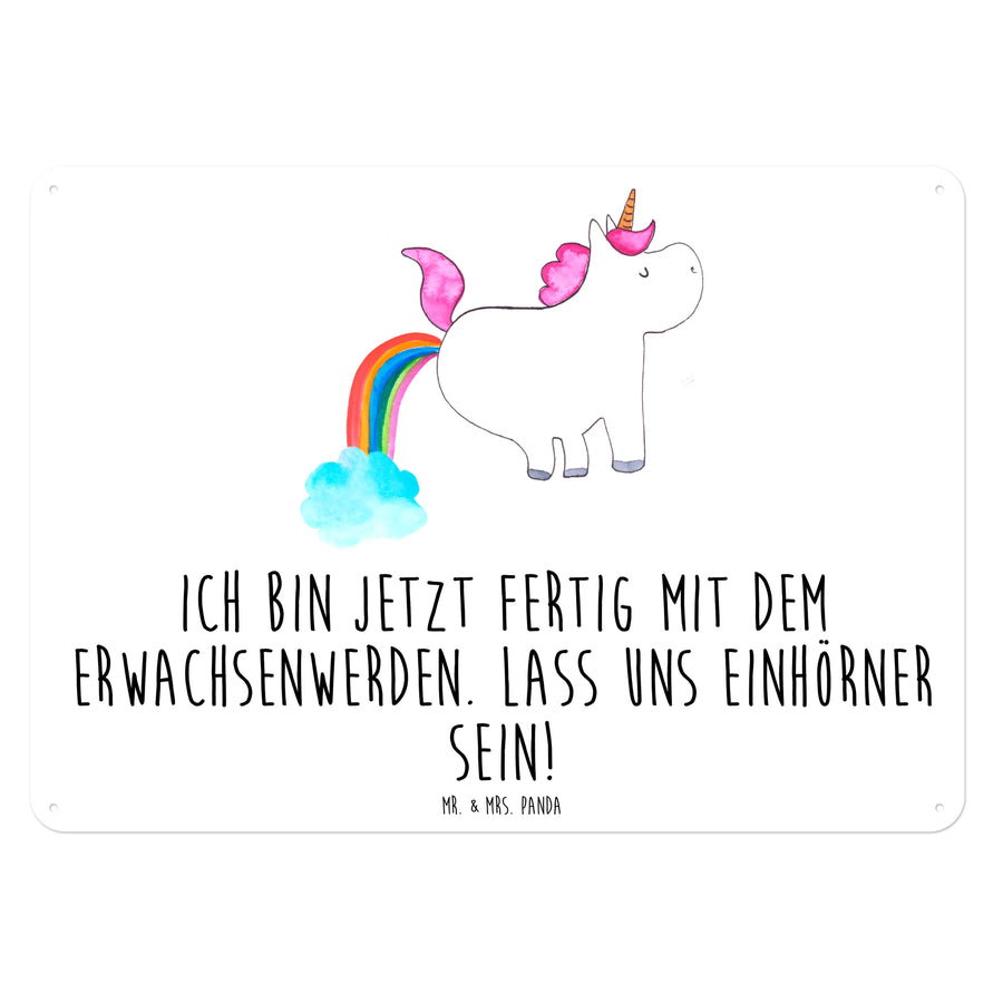 Das wunderschöne und edle Blechschild von Mr. & Mrs. Panda wird mit einem zauberhaften Motiv des pupsenden Einhorns bedruckt und verkörpert die magische Welt der Einhörner. Mit dem Spruch „Ich bin jetzt fertig mit dem Erwachsenwerden. Lass uns Einhörner sein!“ ist dieses Schild die perfekte Dekoration für jeden Raum. Es bringt nicht nur einen Schimmer von Glitzer und Humor in dein Zuhause, sondern erinnert dich auch daran, dass das Leben Spaß machen sollte – egal wie alt du bist!