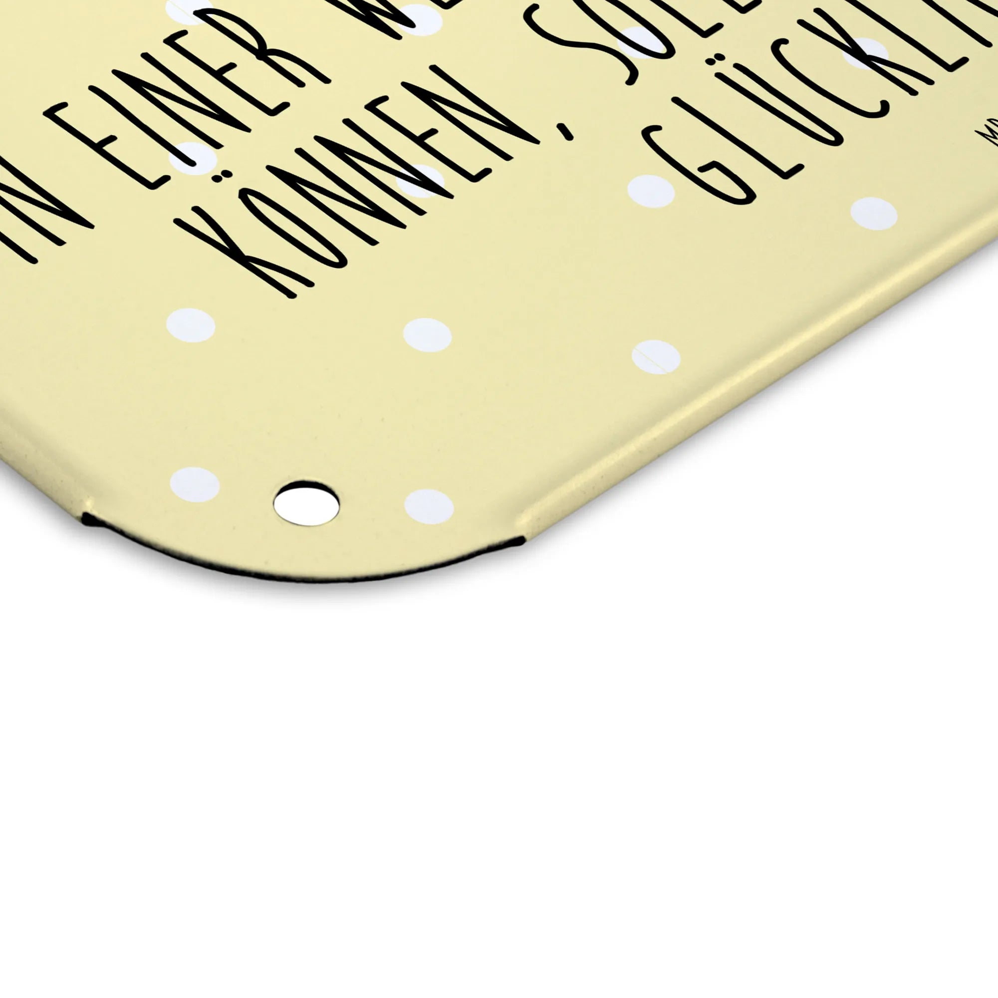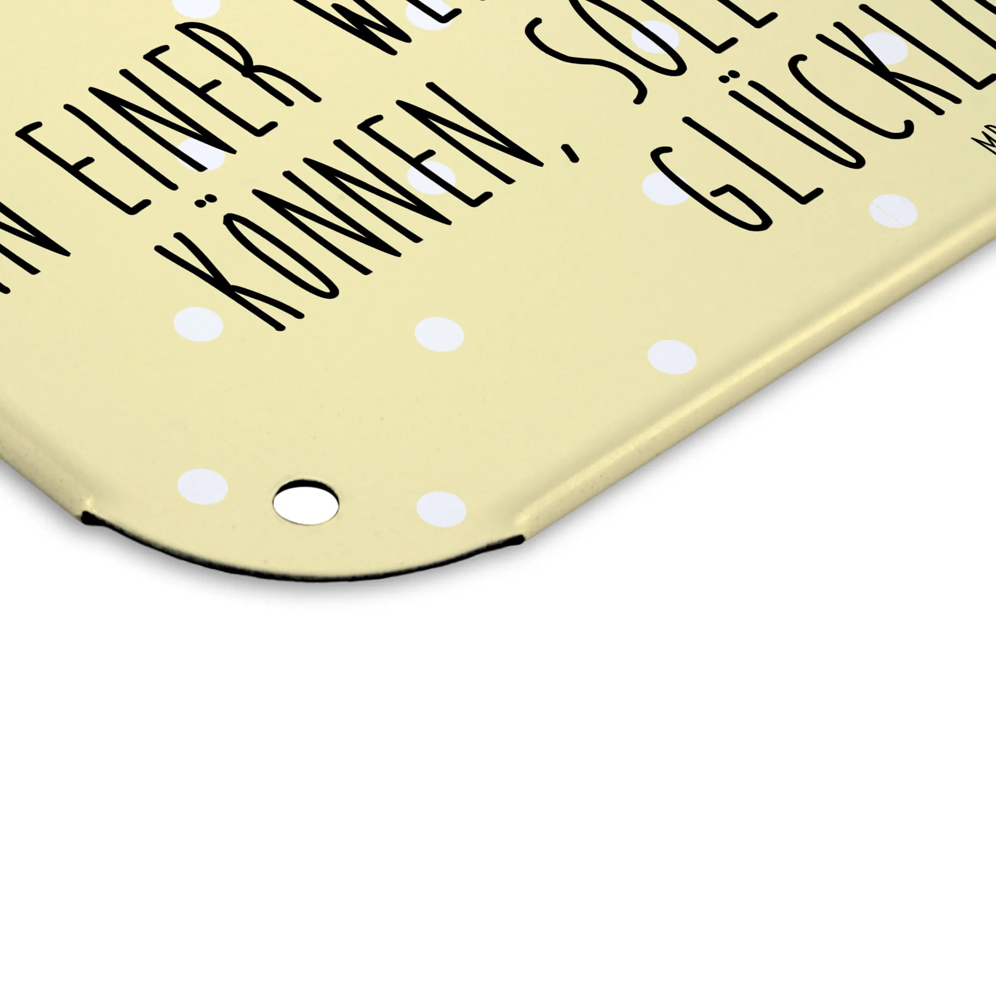 Ob zu Geburtstagen, Einweihungen oder einfach nur als kleine Aufmerksamkeit zwischendurch – dieses Blechschild ist die ideale Geschenkidee für alle, die Freude und positive Gedanken verbreiten möchten. Der eingedruckte Spruch "In einer Welt, in der wir alles sein können, sollten wir vor allem glücklich sein." passt perfekt zu dem liebevollen Design und macht das Schild zu einem harmonischen Wohnaccessoire.