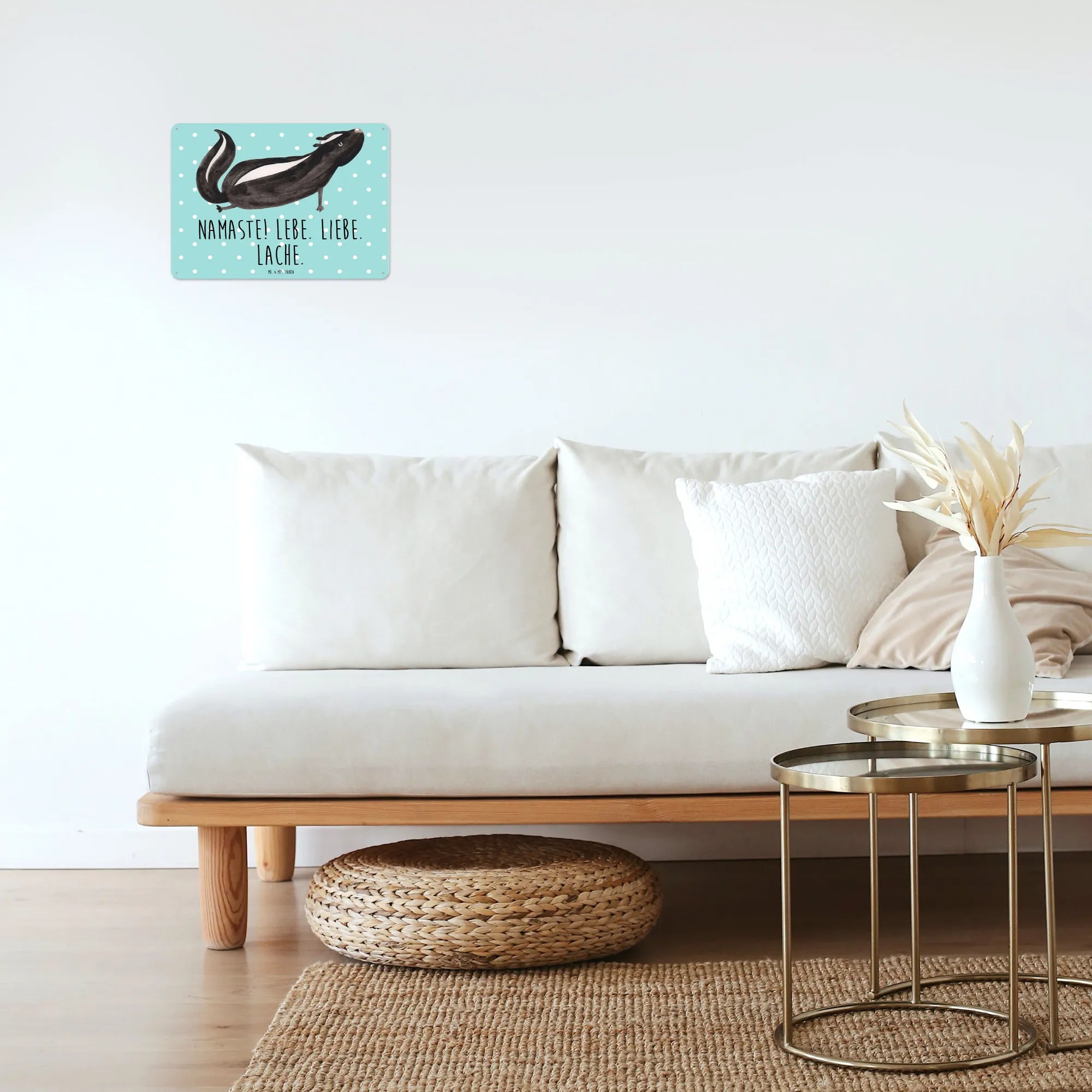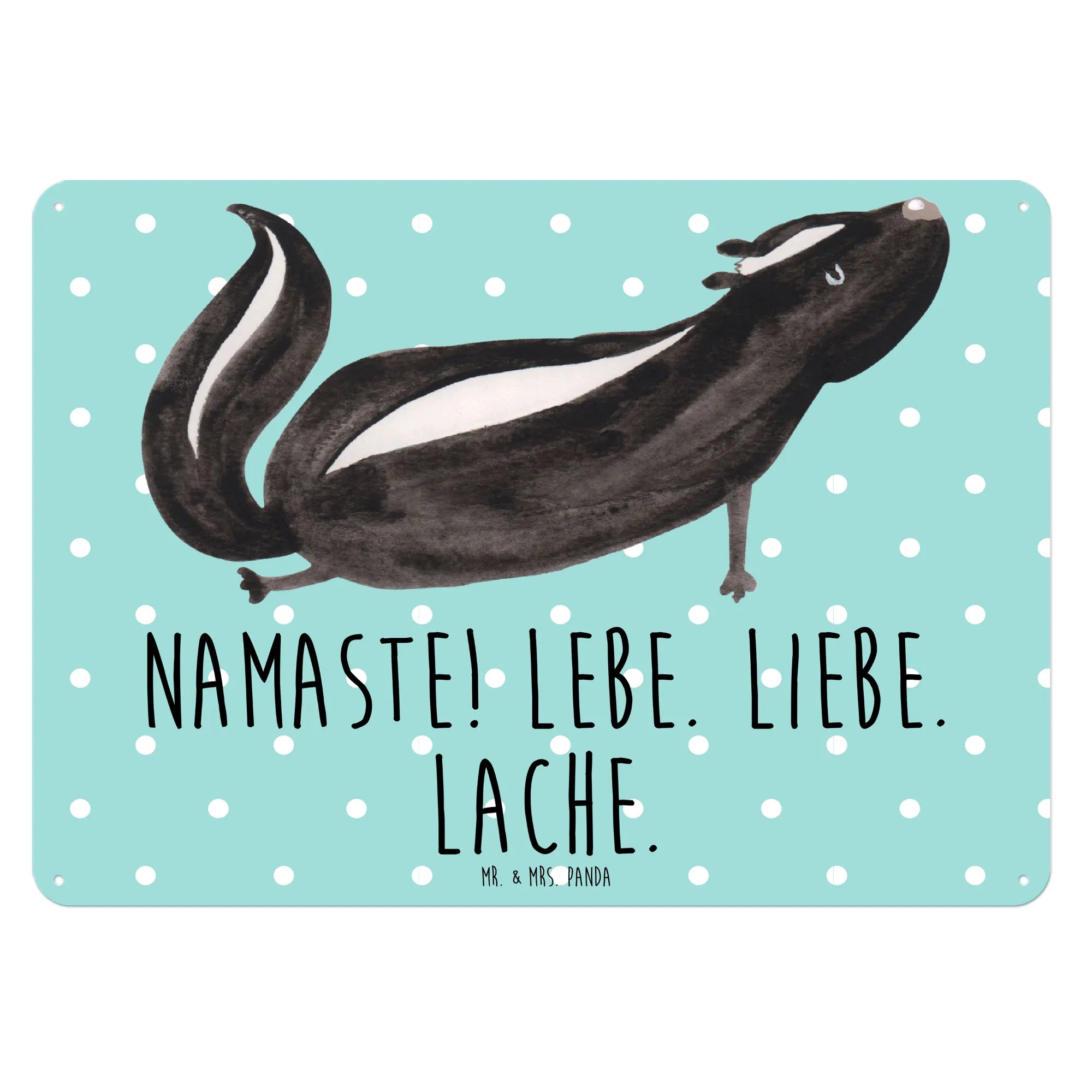 Entdecke das zauberhafte Blechschild "Stinktier Yoga" von Mr. & Mrs. Panda! Dieses einzigartige Metallschild mit dem fröhlichen Stinktier-Motiv ist nicht nur ein echter Hingucker, sondern auch eine wunderbare Erinnerung daran, sich Zeit für sich selbst zu nehmen und das Leben in vollen Zügen zu genießen. Der liebevolle Spruch "Namaste! Lebe. Liebe. Lache." in Verbindung mit dem süßen Aquarellstil des Stinktieres macht das Schild zu einer perfekten Wanddekoration für jeden Raum.