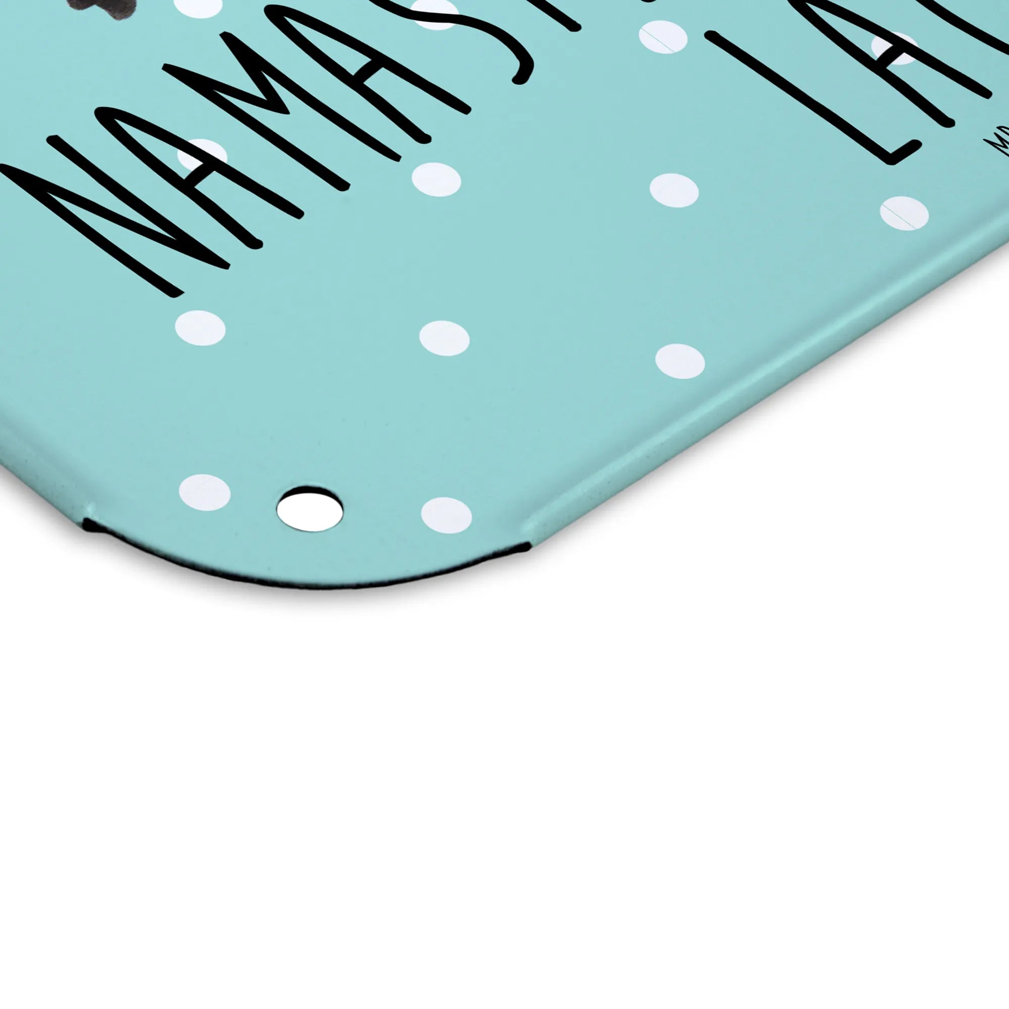 Das fröhliche Blechschild mit dem liebevollen Stinktier Yoga-Motiv von Mr. & Mrs. Panda ist das perfekte Geschenk für alle, die Freude und Inspiration in ihrem Raum schätzen. Mit dem Spruch "Namaste! Lebe. Liebe. Lache." ermutigt es dich, dich auf das Wesentliche im Leben zu konzentrieren. In einem charmanten Aquarellstil zeigt das Schild ein zufriedenes Stinktier, das Yoga praktiziert, und bringt positive Energie in jeden Raum.
