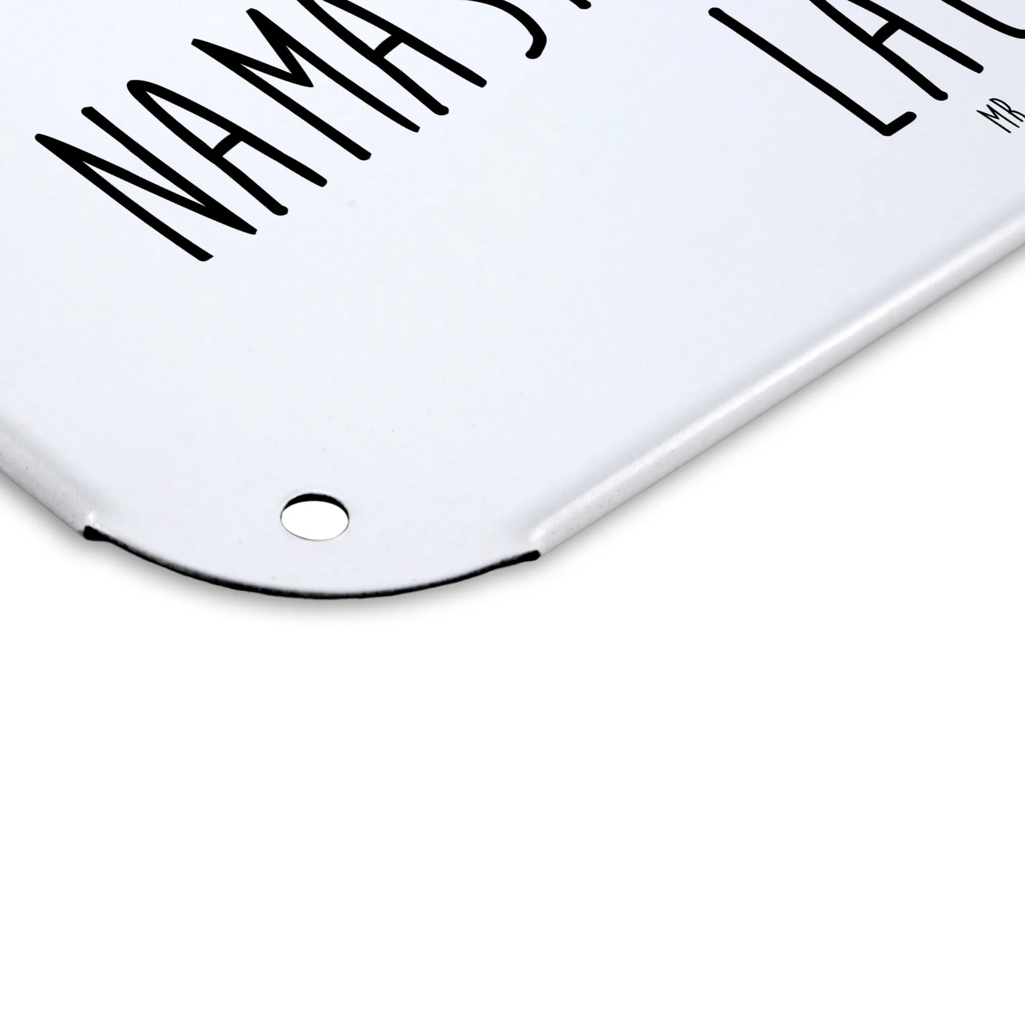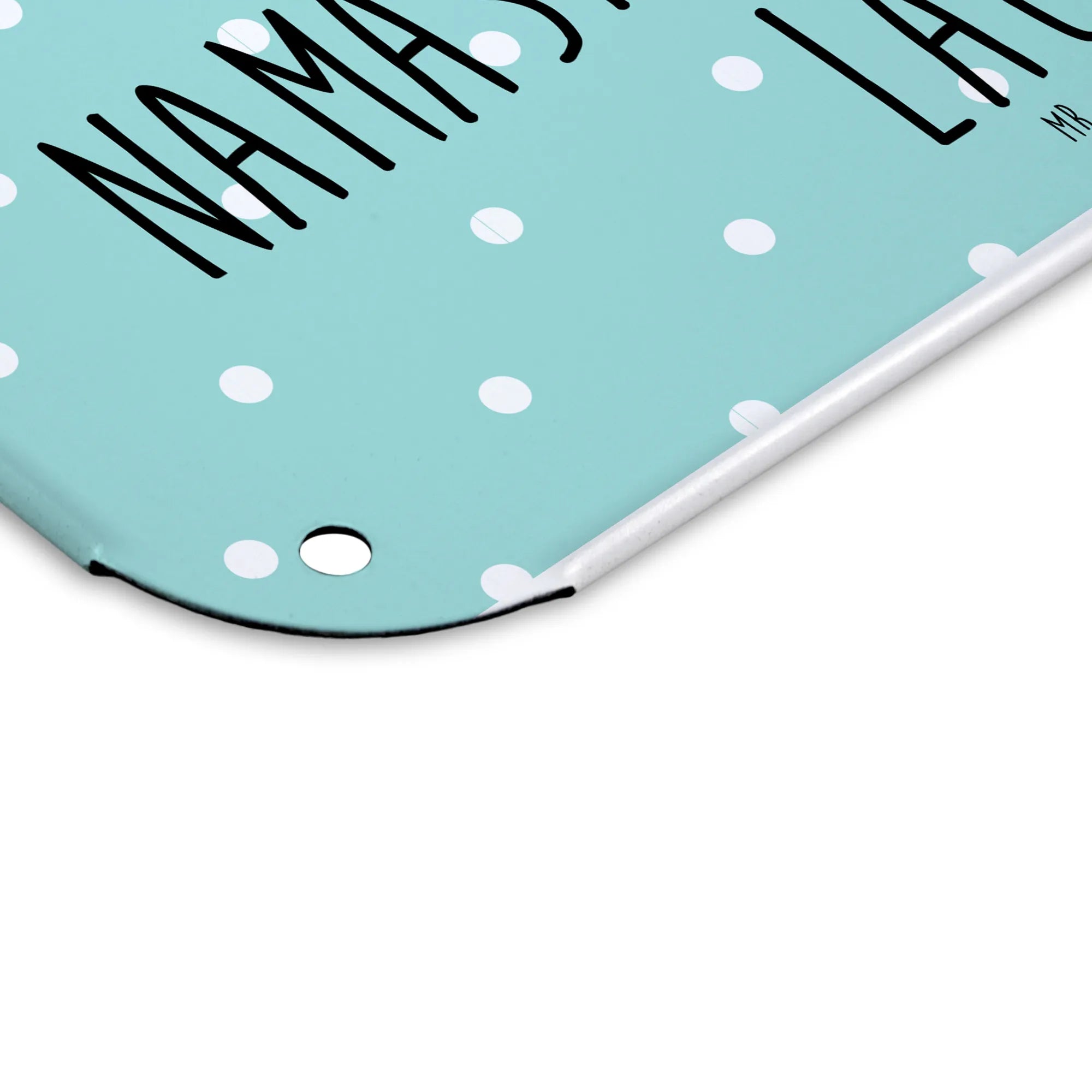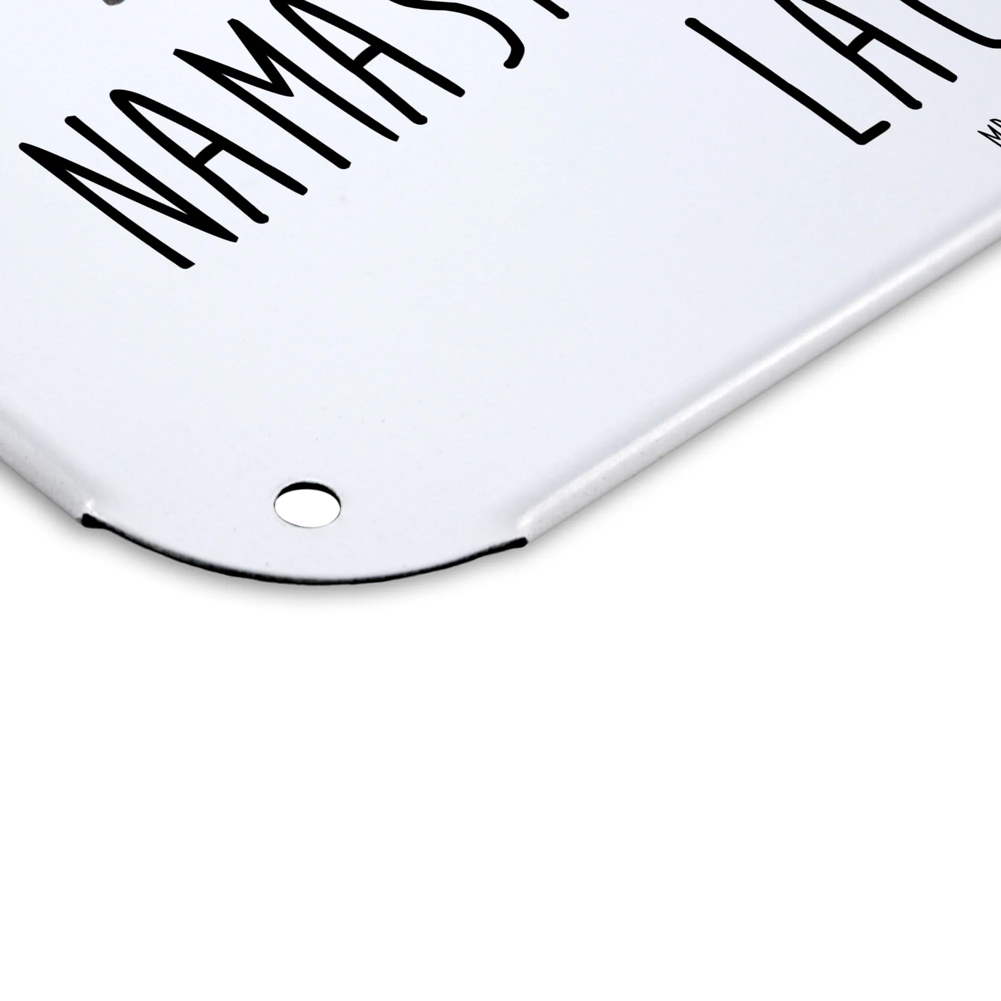 Der motivierende Spruch 'Namaste! Lebe. Liebe. Lache.' wird garantiert ein Lächeln in dein Gesicht zaubern und dich inspirieren, dein Leben in vollen Zügen zu leben. Das edel bedruckte Schild, gefertigt aus hochwertigem Stahlblech, hat eine seidenmatte Oberfläche und ist mit abgerundeten Ecken sowie umgefalzten Kanten für eine sichere Handhabung versehen.