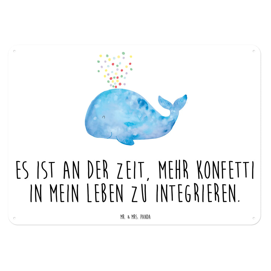 Entdecke unser bezauberndes Blechschild mit dem Motiv "Wal Konfetti" aus der besonderen Kollektion der Meerestiere von Mr. & Mrs. Panda. Dieses edle und langlebig bedruckte Schild ist mehr als nur eine Dekoration; es ist ein Stück Freude und Motivation für dein Zuhause.