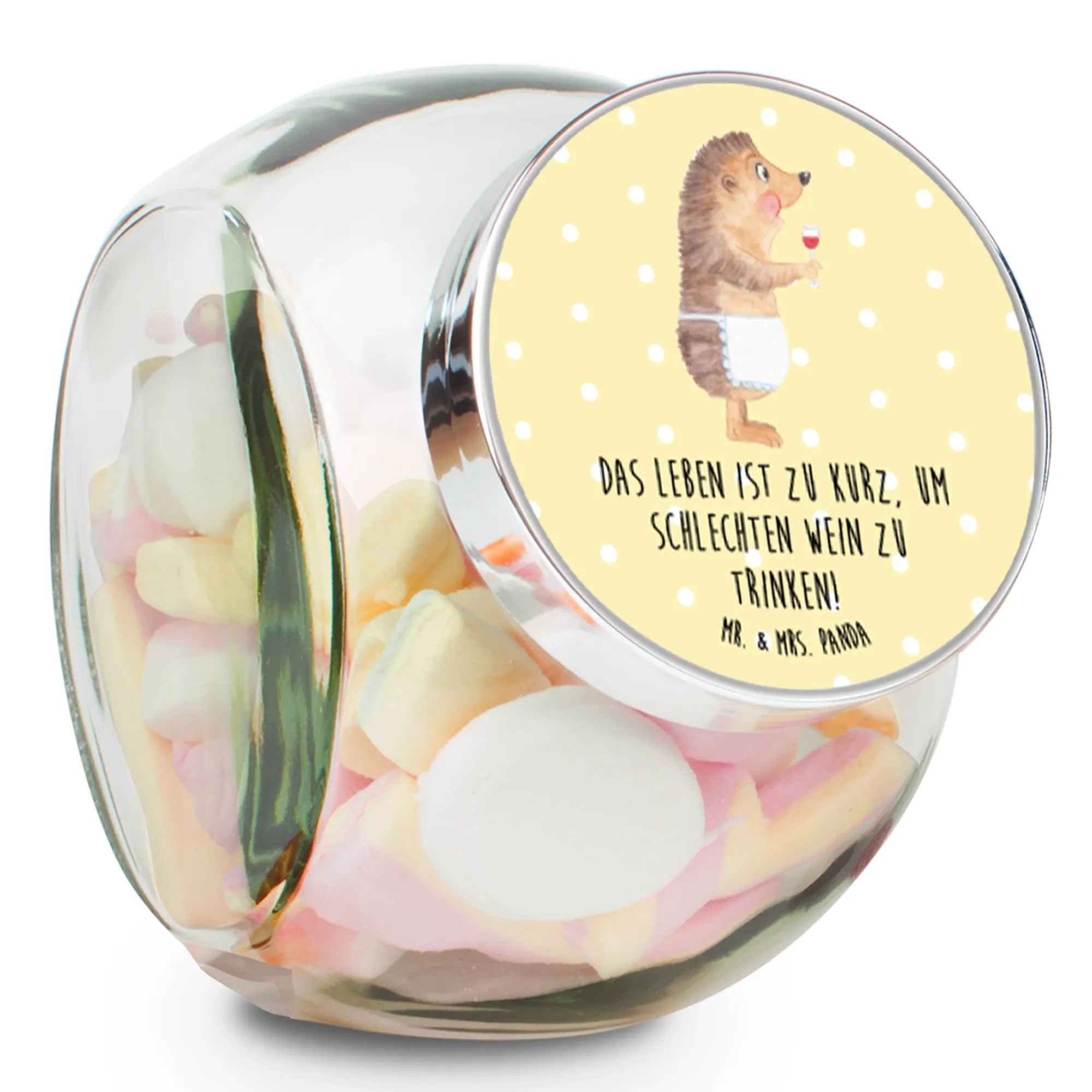 Bonbonglas Igel mit Wein - XL 2000ml - mit Spruch - Gelb Pastell