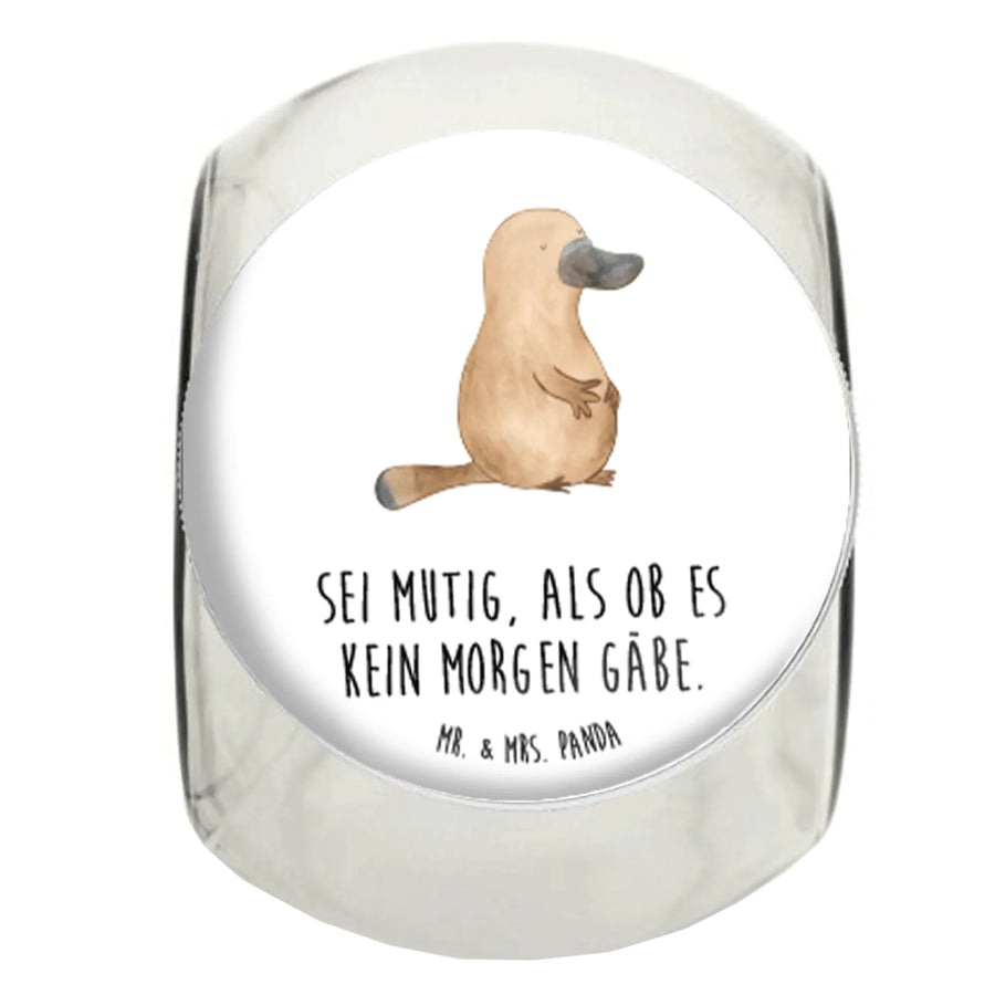 Das wunderschöne Bonbonglas von Mr. & Mrs. Panda mit dem motivierenden Schnabeltier-Motiv "Mutig" ist das perfekte Geschenk für alle, die ihre Schätze stilvoll aufbewahren möchten.