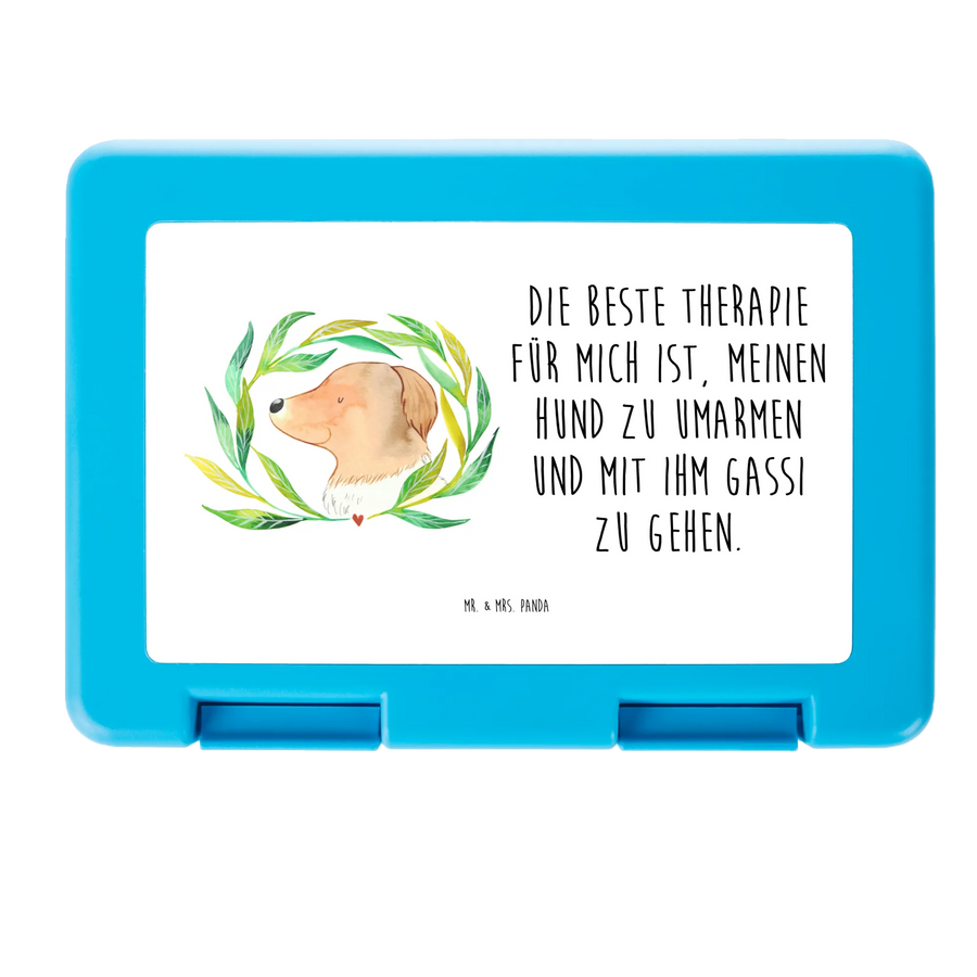 Unsere wunderschöne Brotbox mit dem niedlichen Motiv "Hund Ranke" aus der Hunde Kollektion von Mr. & Mrs. Panda ist das perfekte Geschenk für alle Hundeliebhaber! Ob für die Schule, bei der Arbeit oder für ein Picknick im Park, diese praktische Brotdose kombiniert Funktionalität mit einem liebevollen Design, das Tierfreunde begeistert. Mit der charmanten Darstellung eines Hundes, der eine Blume in der Hand hält, ist sie nicht nur nützlich, sondern bringt auch ein Lächeln ins Gesicht. Zudem ist sie mit dem bezaubernden Spruch "Die beste Therapie für mich ist, meinen Hund zu umarmen und mit ihm Gassi zu gehen" versehen, der die unbeschwerte Freude und die Liebe zu unseren vierbeinigen Freunden perfekt widerspiegelt.