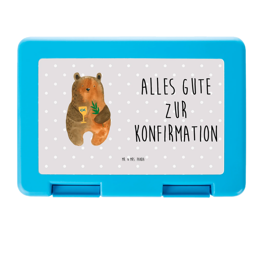 Unsere liebevolle Brotzeitbox "Konfirmation-Bär" von Mr. & Mrs. Panda ist das perfekte Geschenk zur Konfirmation! Diese wundervolle Brotdose feiert den besonderen Tag mit einem süßen Bären-Motiv, der seinen goldenen Kelch und einen Zweig präsentiert.