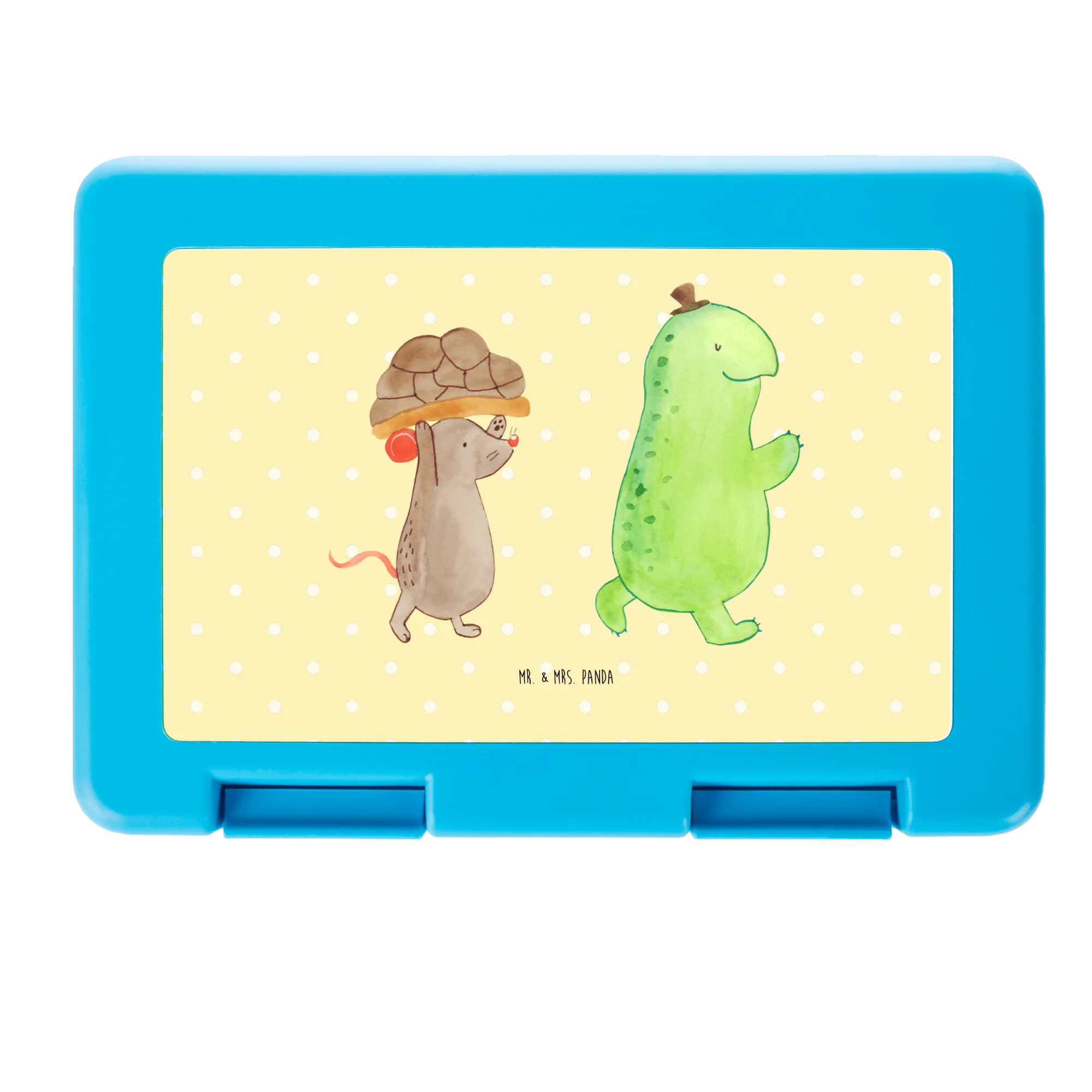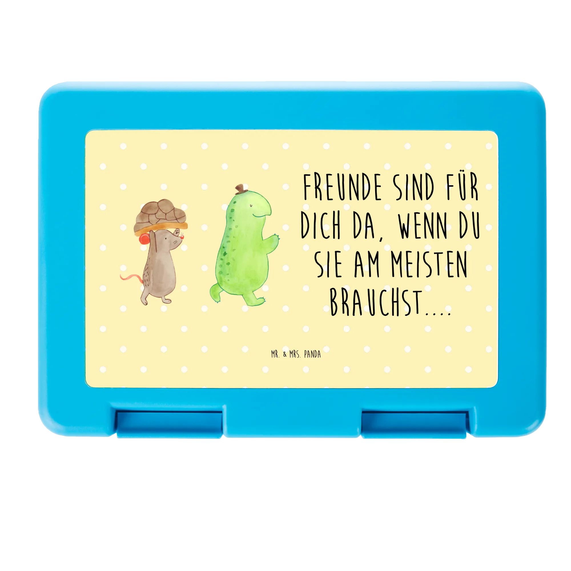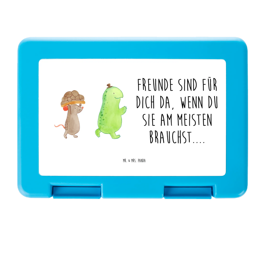 Mr. & Mrs. Panda Brotdose Schildkröte & Maus – die perfekte Kombination aus Funktionalität und Herzlichkeit. Das handgezeichnete Motiv aus unserer Schildkröten-Kollektion zeigt eine fröhliche Schildkröte und eine kleine Maus, begleitet vom Spruch: „Freunde sind für dich da, wenn du sie am meisten brauchst....“ Diese Brotbox bringt Wärme in jeden Pausentag und ist ideal für Schule, Kindergarten, Büro oder Picknick.