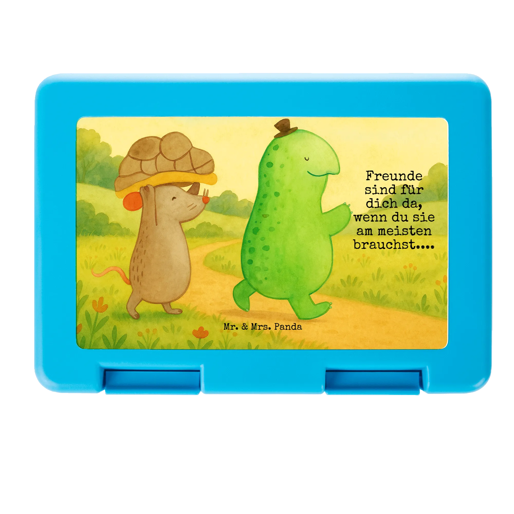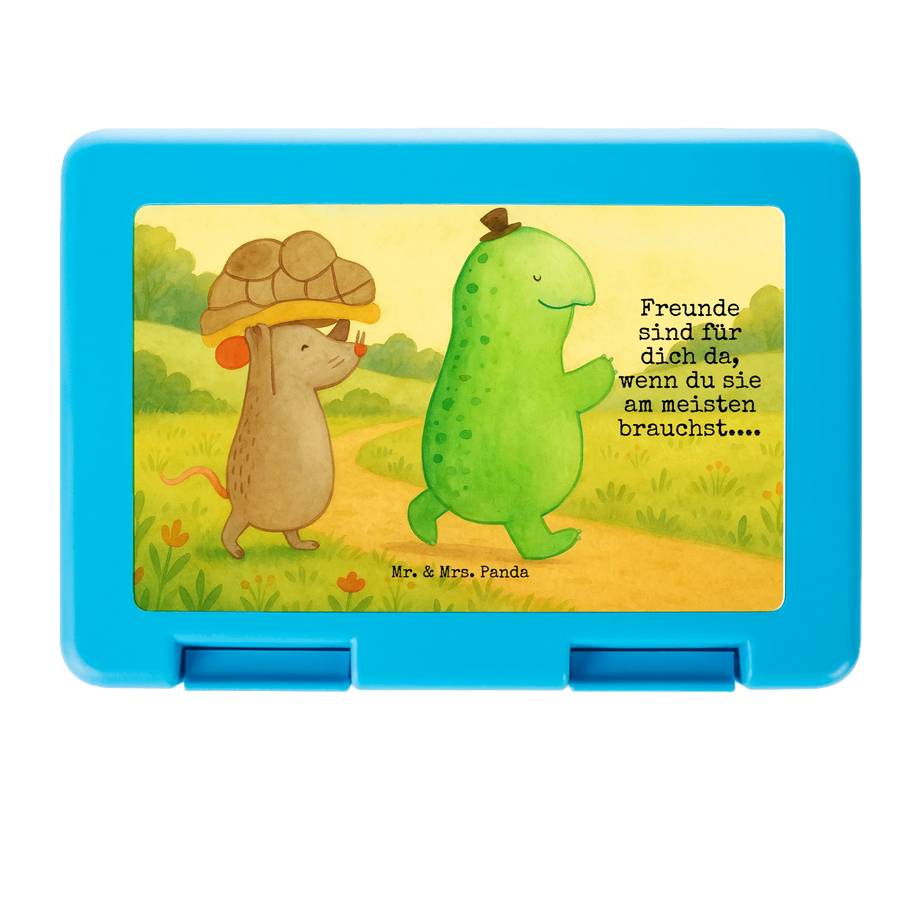 Mr. & Mrs. Panda Brotdose Schildkröte & Maus – eine fröhliche Lunchbox, die Herz und Pausenbrot gleichermaßen verzaubert. Die süße Schildkröte und die kleine Maus begleiten dich mit dem liebevollen Spruch „Freunde sind für dich da, wenn du sie am meisten brauchst....“ durch den Tag. Dieses handgezeichnete Motiv aus der Schildkröten Kollektion ist ideal für Kinder, Jugendliche und alle Schildkröten-Fans.