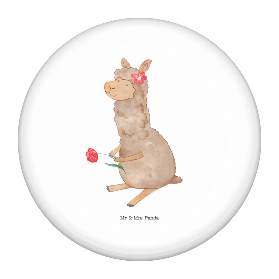 Der 50mm Button mit dem bezaubernden Alpaka Blume Motiv von Mr. & Mrs. Panda ist nicht nur ein einfacher Anstecker, sondern ein kleines Kunstwerk, das Freude und gute Laune verbreitet! Mit diesem niedlichen Button hast du immer ein flauschiges Alpaka an deiner Seite, das eine hübsche Blume im Haar trägt und eine weitere Blume in der Hand hält. Ein Anstecker, der zum Lächeln einlädt! 😊
