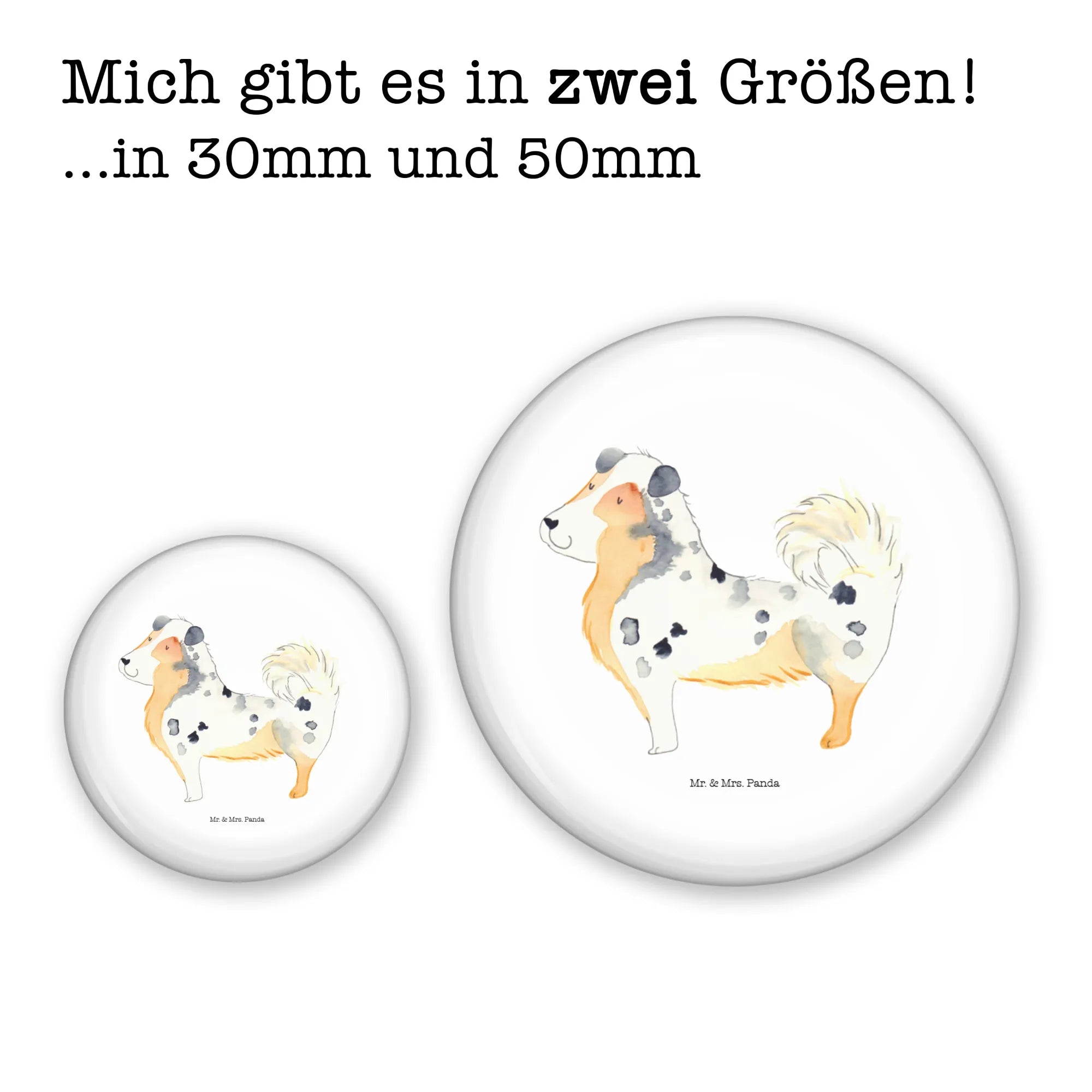 Wenn du auf der Suche nach einem ganz besonderen Geschenk für Dog Lovers bist, dann ist unser 50mm Button mit dem süßen Motiv des Australien Shepherds genau das Richtige!