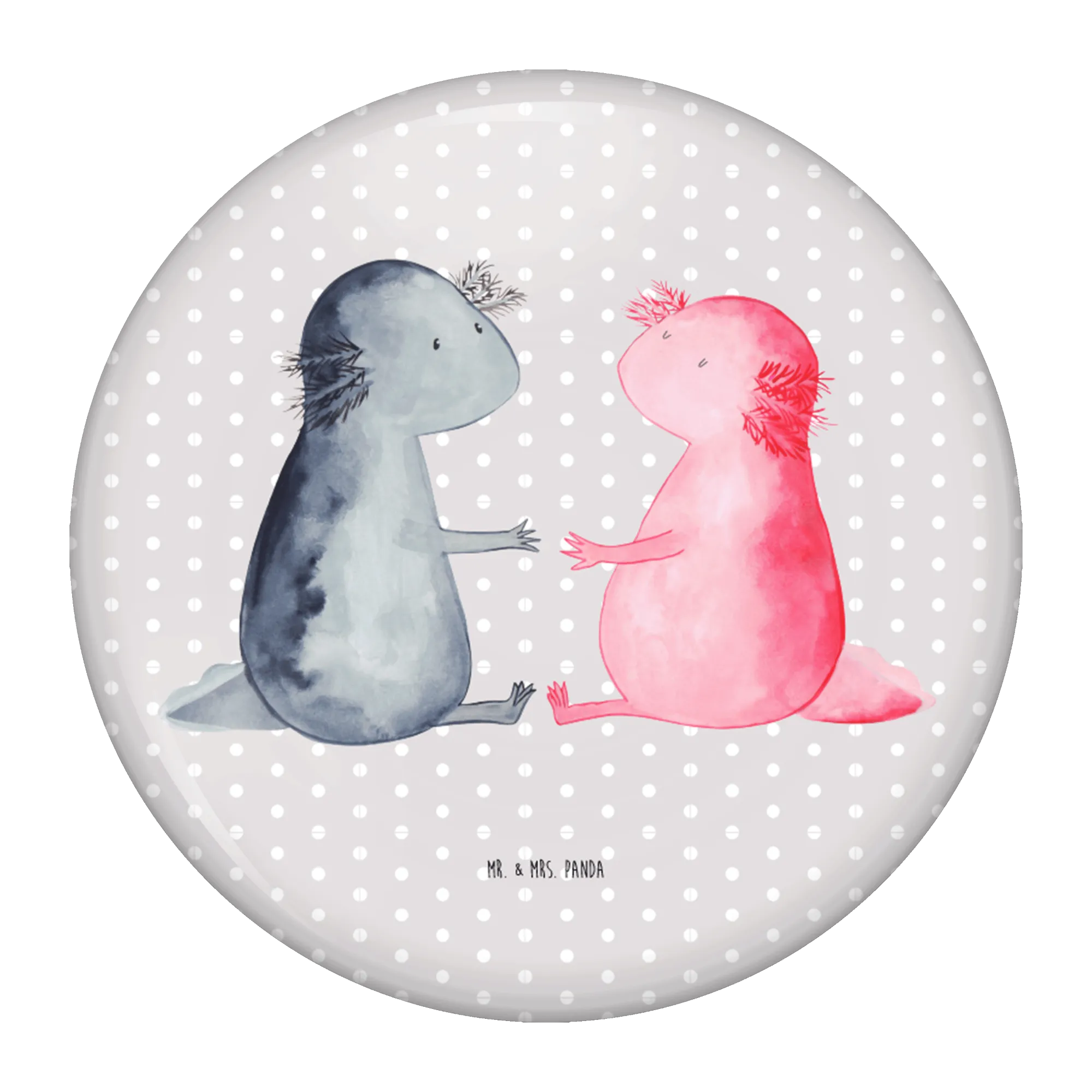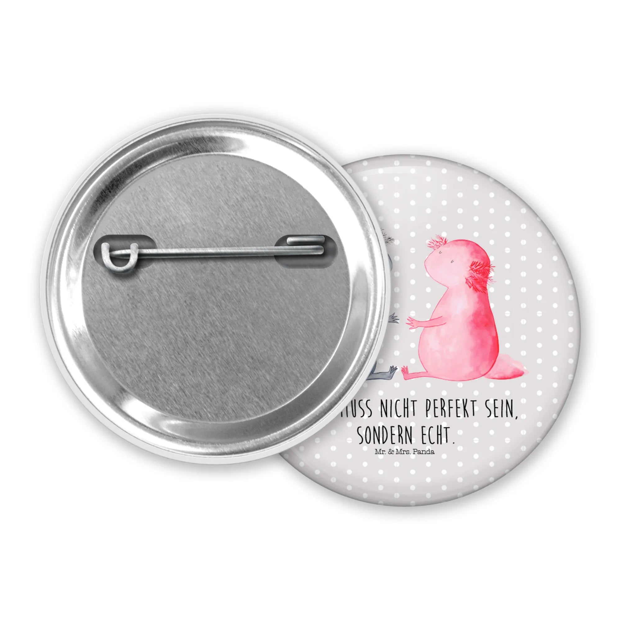 Dieser Button ist ein wunderschöner und edler Button von Mr. & Mrs. Panda, der durch seine hochwertige Verarbeitung besticht. Die runde Form und die dezente Hintergrundfarbe in Grau Pastell sorgen dafür, dass das Motiv der Axolotl wunderbar zur Geltung kommt, ohne aufdringlich zu wirken. Das Material besteht aus hochwertigem Papier, das mit einem edlen und langlebigen Druck versehen wurde. Geschützt wird das kleine Kunstwerk durch eine robuste Hülle, die dafür sorgt, dass dein Anstecker auch bei täglichem Gebrauch lange wie neu aussieht.