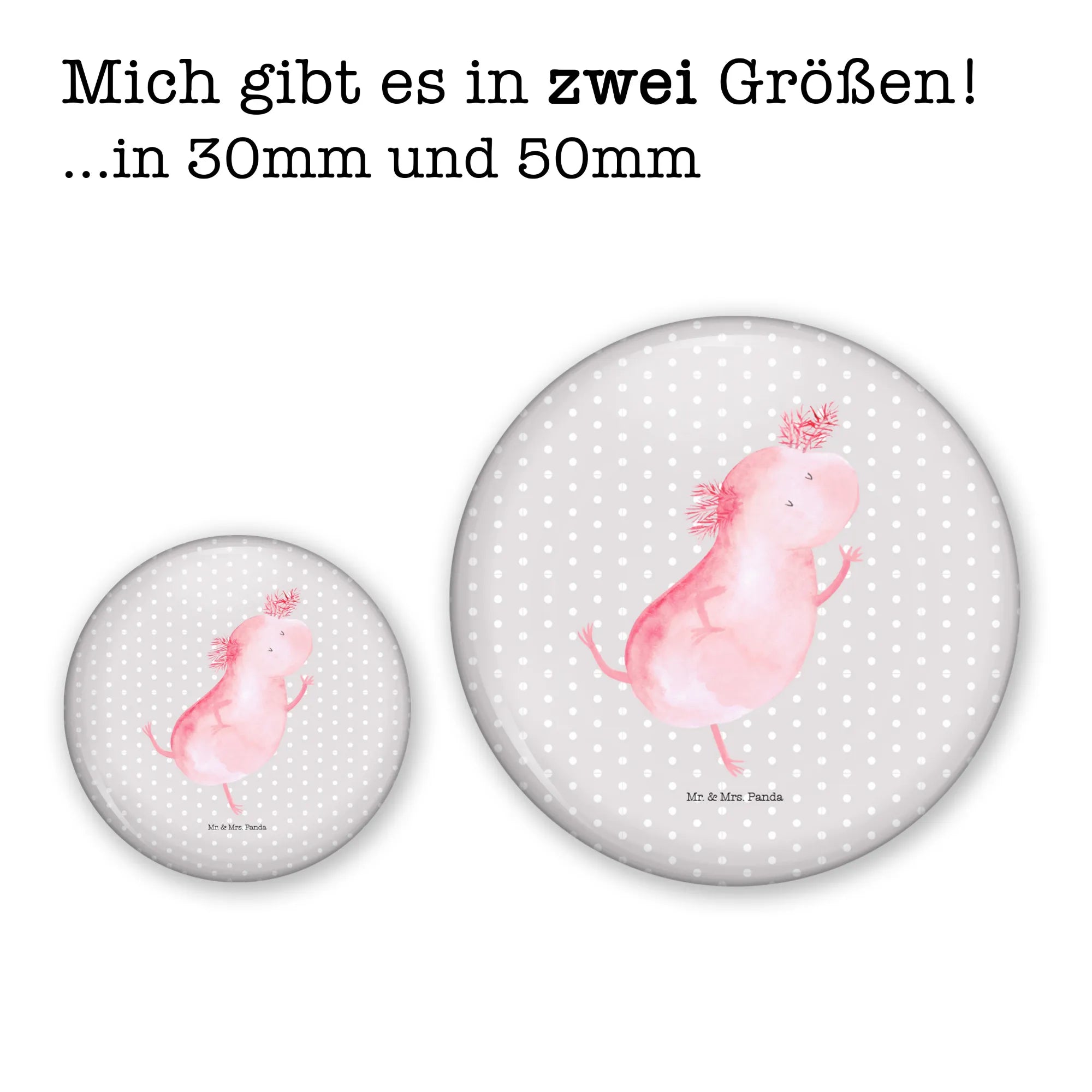 Der 50mm Button mit dem fröhlichen Motif "Axolotl tanzt" aus der Axolotl Kollektion von Mr. & Mrs. Panda ist das perfekte Geschenk für alle, die das Leben lieben und ein wenig verrückt sind. 🎉 Dieser niedliche Anstecker, mit einem lächelnden Axolotl, bringt sofort Freude und eine gute Laune in jeden Alltag. Die farbenfrohe Illustration dieses einzigartigen Schwanzlurchs erinnert uns daran, dass das Leben mehr ist als nur ernst zu sein.