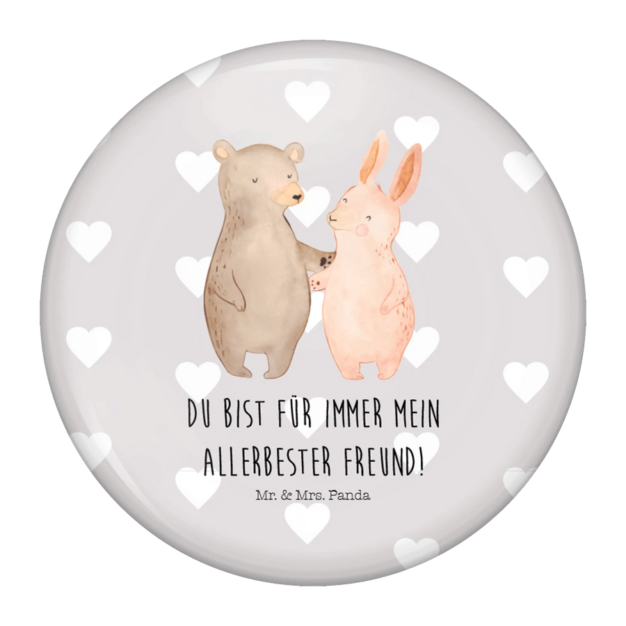 Button Bär Hase Umarmen - mit Spruch - Grau Pastell