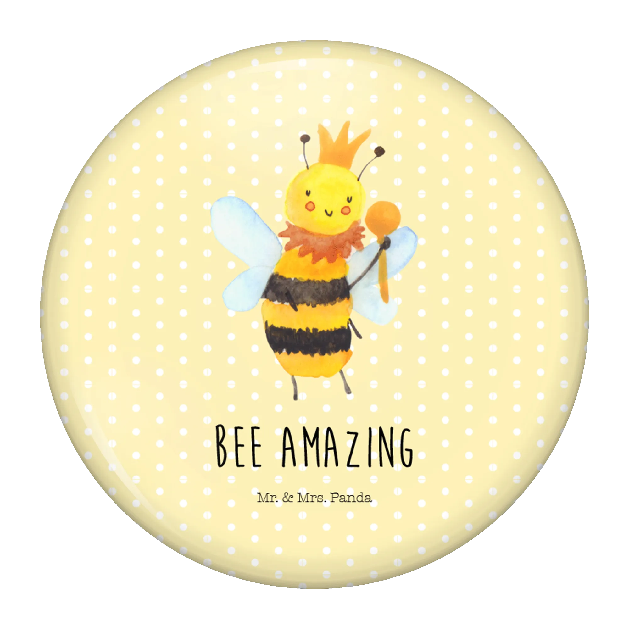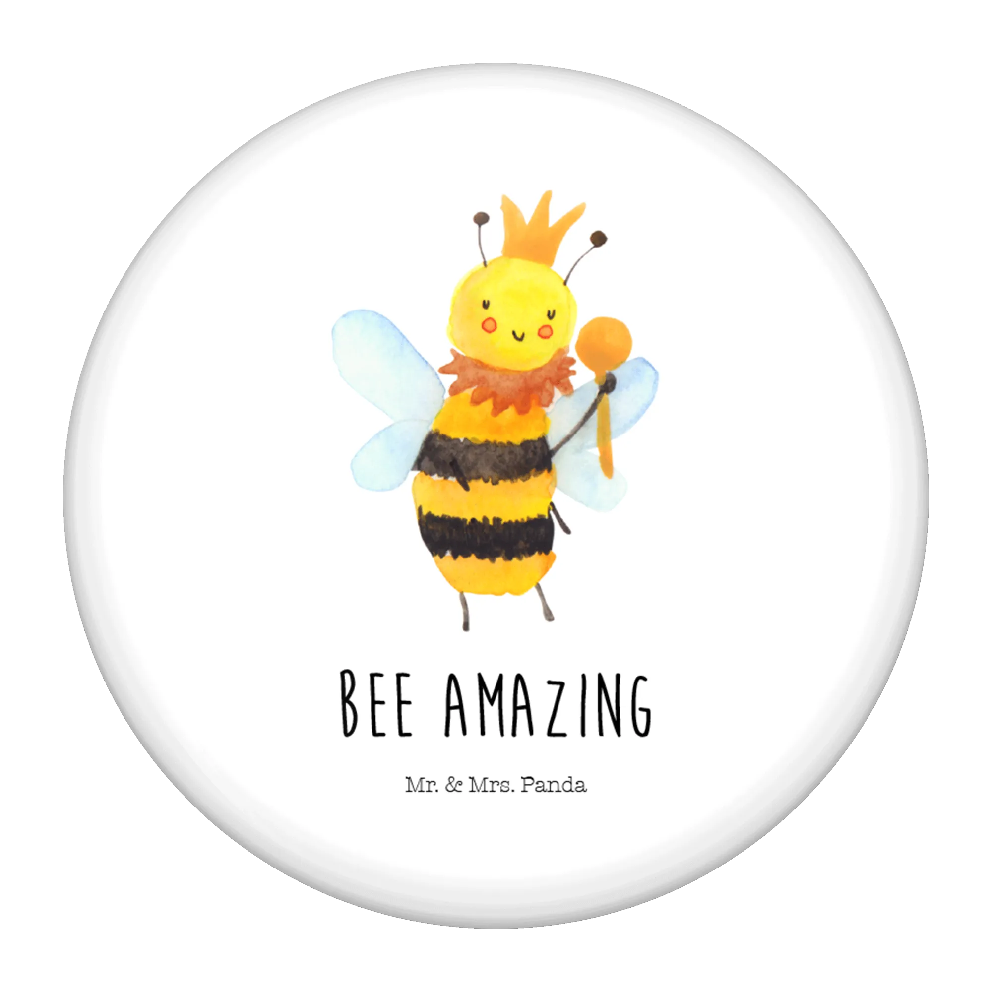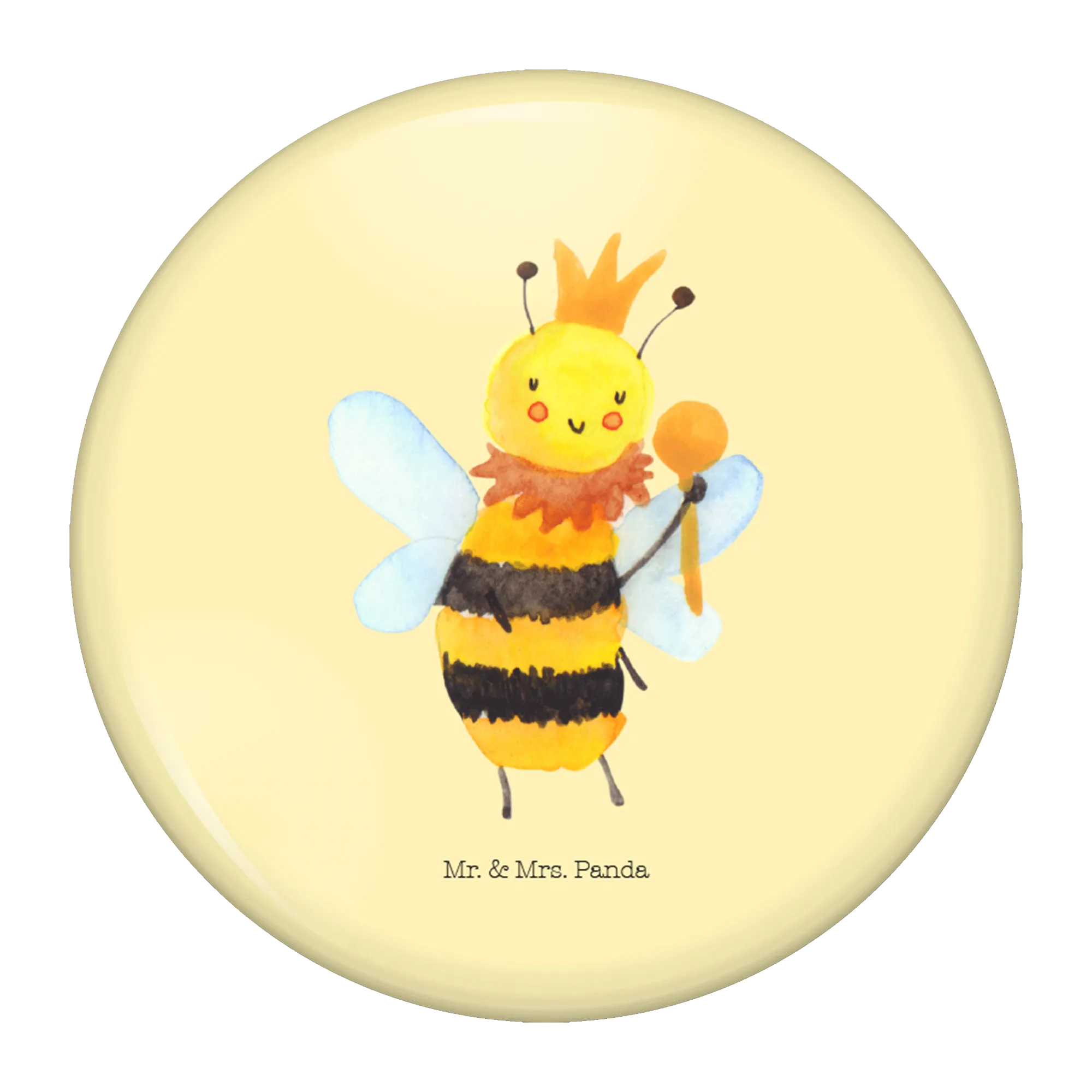 Entdecke den bezaubernden 50mm Button 'Biene König' aus der exklusiven Bienen-Kollektion von Mr. & Mrs. Panda! Mit diesem farbenfrohen Anstecker, der eine süße Biene mit Krone und Zepter zeigt, verwandelst du jedes Outfit in ein fröhliches Highlight. Der Button hat einen Durchmesser von 50 Millimetern und ist ideal für echte Bienenliebhaber, Imker oder einfach für alle, die die Natur schätzen.