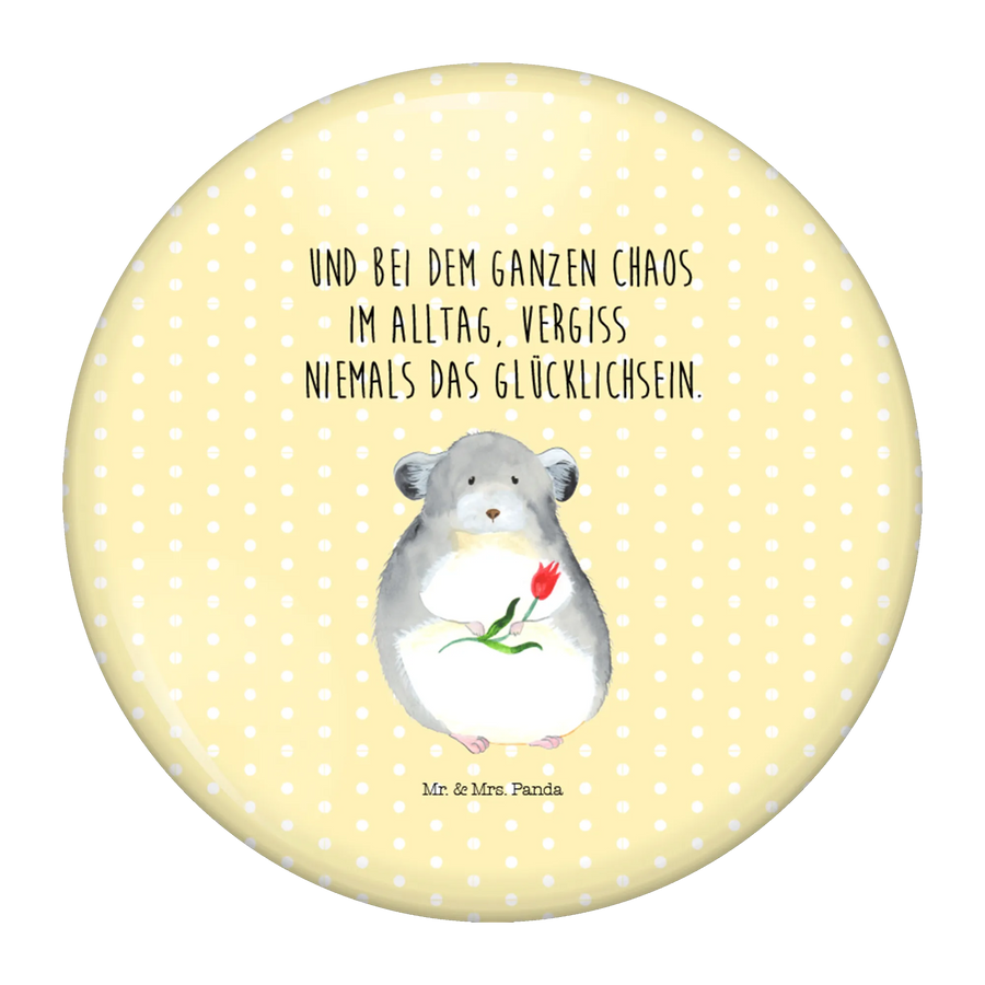 Button Chinchilla mit Blume - mit Spruch - Gelb Pastell