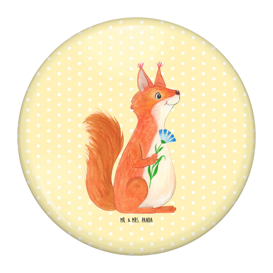 Button Eichhörnchen Blume - ohne Spruch - Gelb Pastell