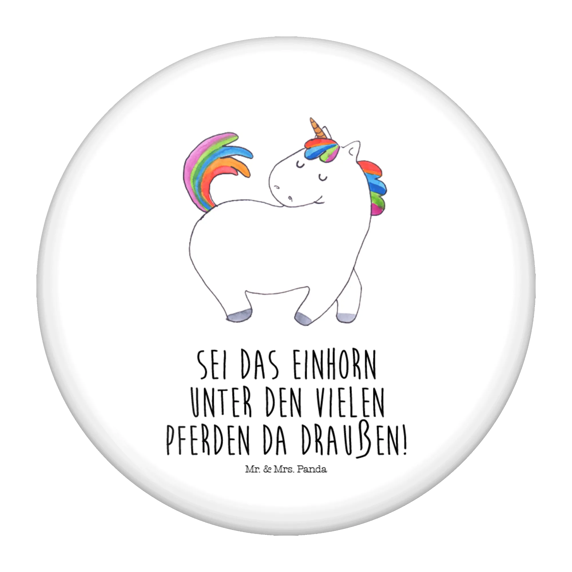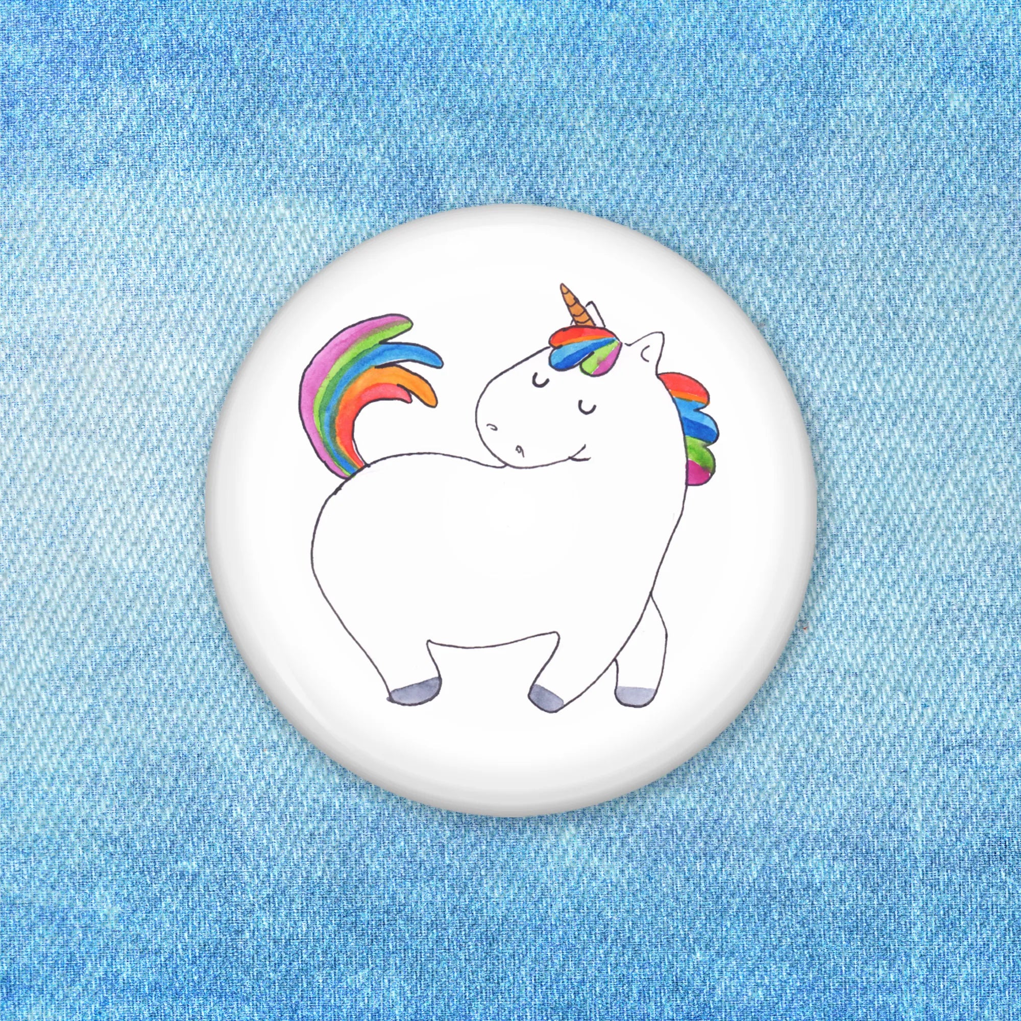 Der 50mm Button mit dem stolzierenden Einhorn aus der Einhorn-Kollektion ist das perfekte Accessoire für alle, die stolz darauf sind, anders zu sein. Mit seinem bunten und fröhlichen Design zieht der Button alle Blicke auf sich und verkörpert die Botschaft: Sei das Einhorn unter den vielen Pferden da draußen!