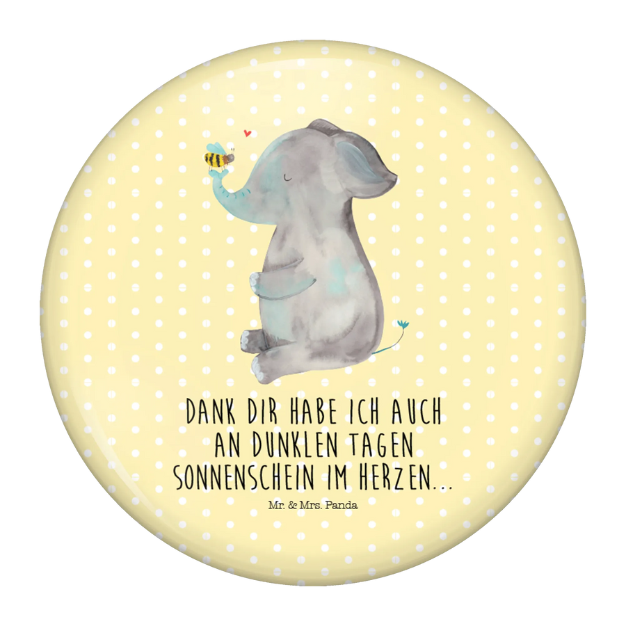 Button Elefant & Biene - mit Spruch - Gelb Pastell