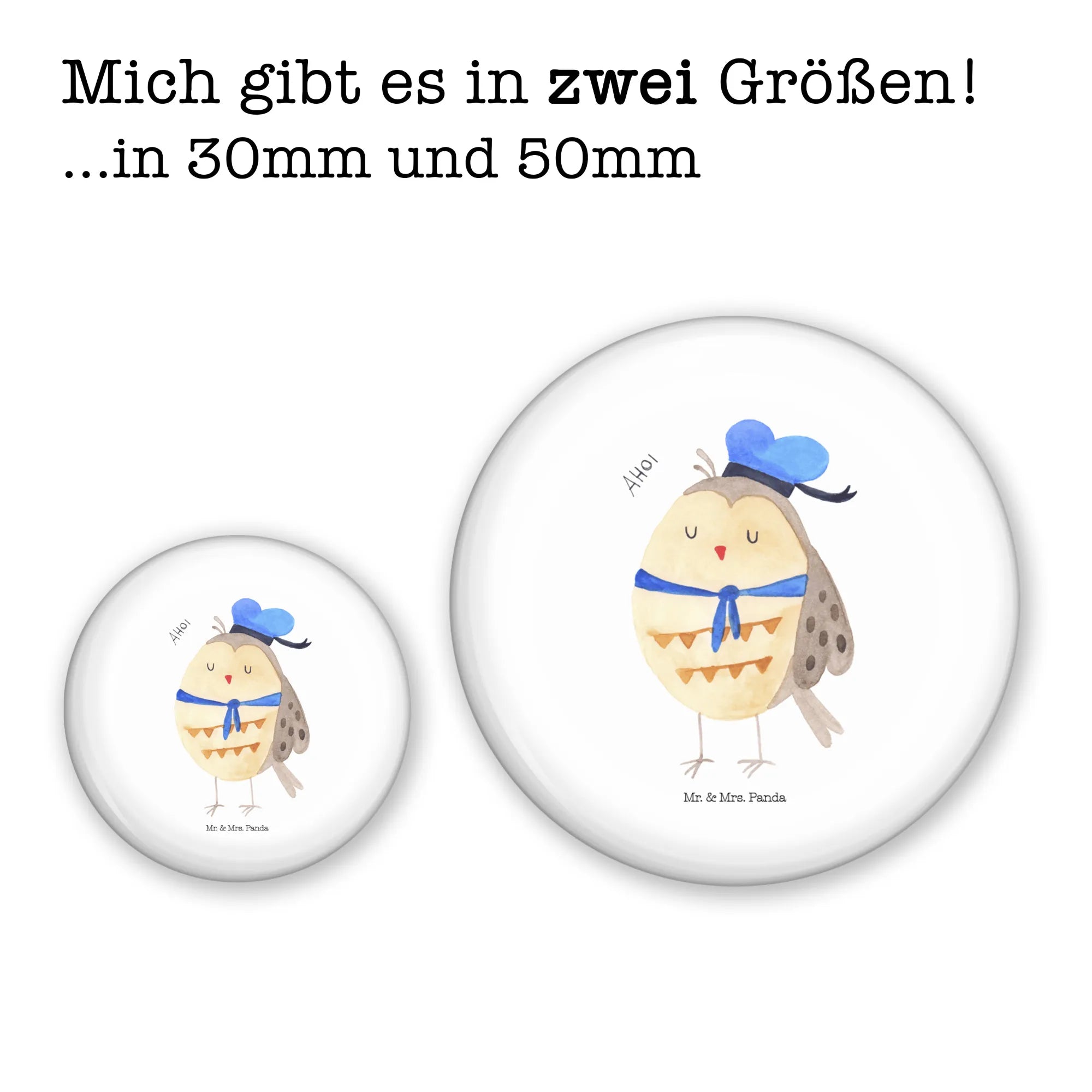 Entdecke den bezaubernden 50mm Button mit dem niedlichen Motiv der Eule Matrosen aus der beliebten Eulen-Kollektion von Mr. & Mrs. Panda! Diese herzige Eule mit ihrem süßen Matrosenhut bringt nicht nur Freude, sondern ist auch ein zeitloser Begleiter für viele Anlässe.