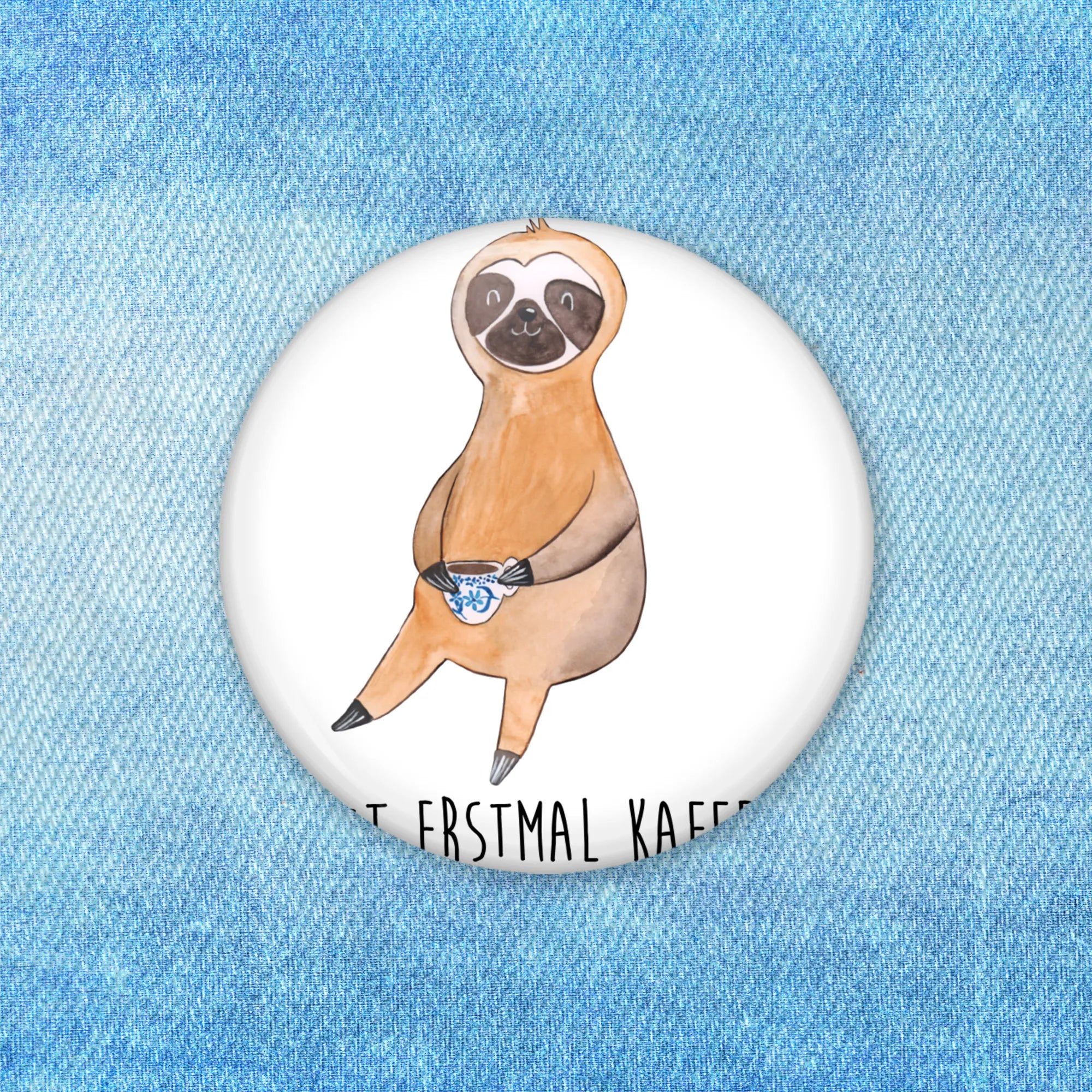 Der 50mm Button mit dem süßen Faultier Motiv 'Kaffee' aus der Faultier - Kollektion von Mr. & Mrs. Panda ist das perfekte Geschenk für alle, die das Leben entspannt angehen und ihre Liebe zu Kaffee und Faultieren zeigen möchten. Egal ob du ein Morgenmuffel bist, der seinen ersten Kaffee des Tages braucht, oder ein Frühaufsteher, der seine Kaffeegewohnheiten mit einem Augenzwinkern zelebrieren möchte – dieser charmante Button fügt deinem Outfit eine Portion Lächeln hinzu.