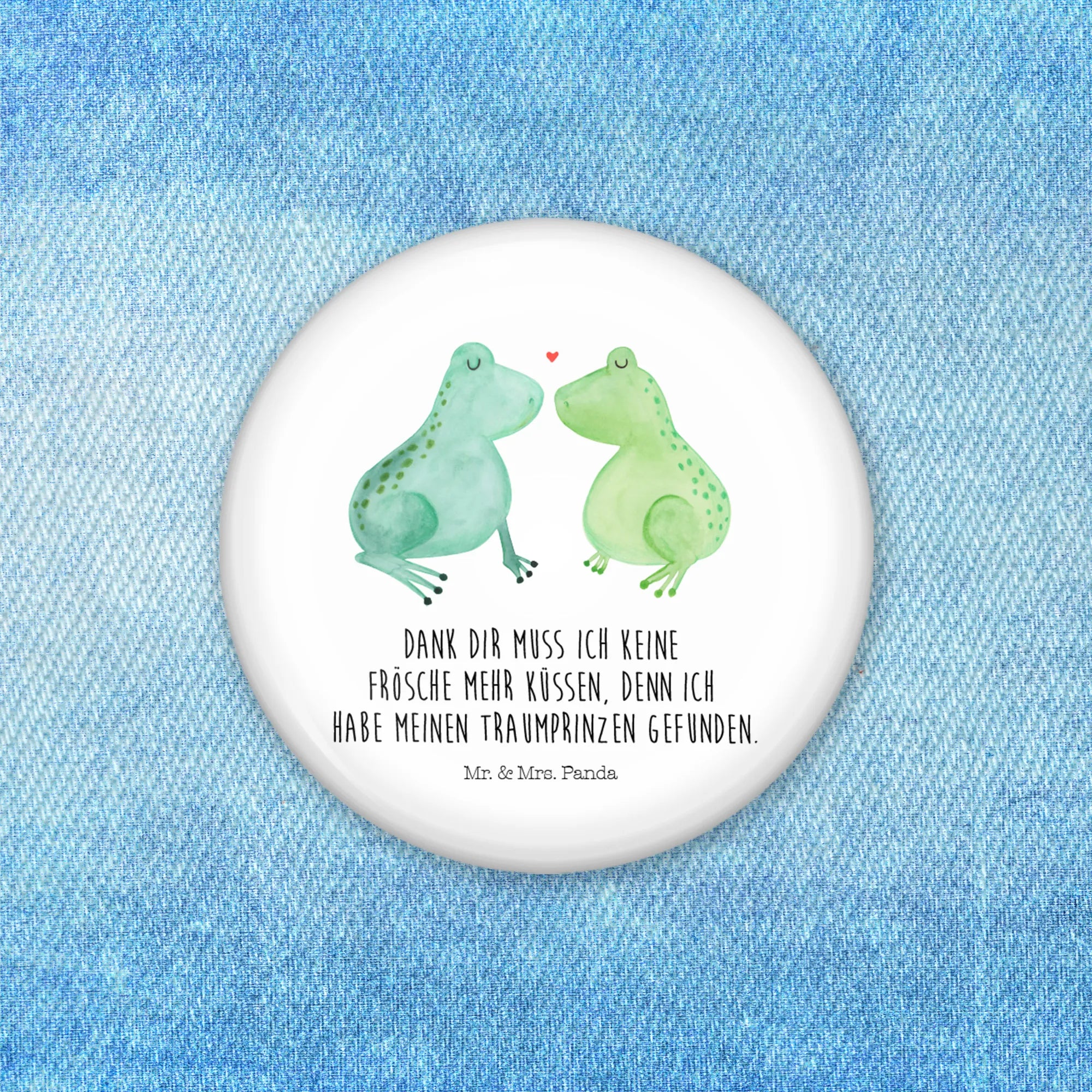 Der 50mm Button "Frosch Liebe" aus der liebevollen Kollektion von Mr. & Mrs. Panda ist das perfekte Geschenk für alle Verliebten. Mit seinem charmanten Design und dem süßen Text "Dank dir muss ich keine Frösche mehr Küssen, denn ich habe meinen Traumprinzen gefunden" bringt er Herz und Glück direkt an die Brust. Egal, ob zur Verlobung, zum Hochzeitstag oder einfach als Überraschung für deinen Partner, dieser Button ist ein wunderschöner Liebesbeweis.
