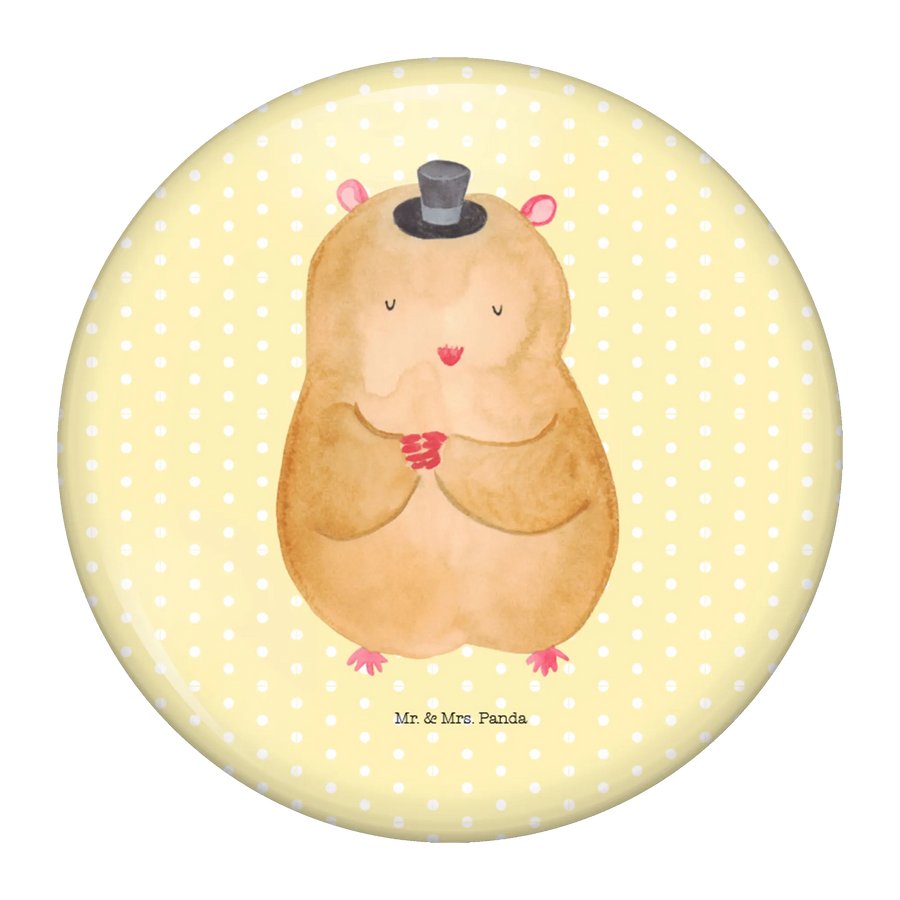 Button Hamster mit Hut - ohne Spruch - Gelb Pastell
