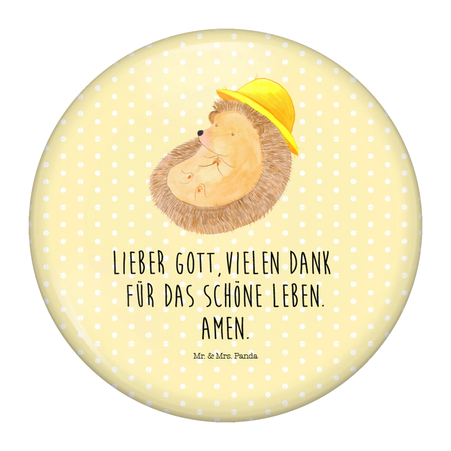 Button Igel betet - mit Spruch - Gelb Pastell