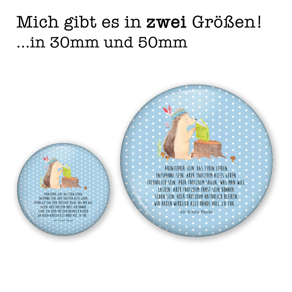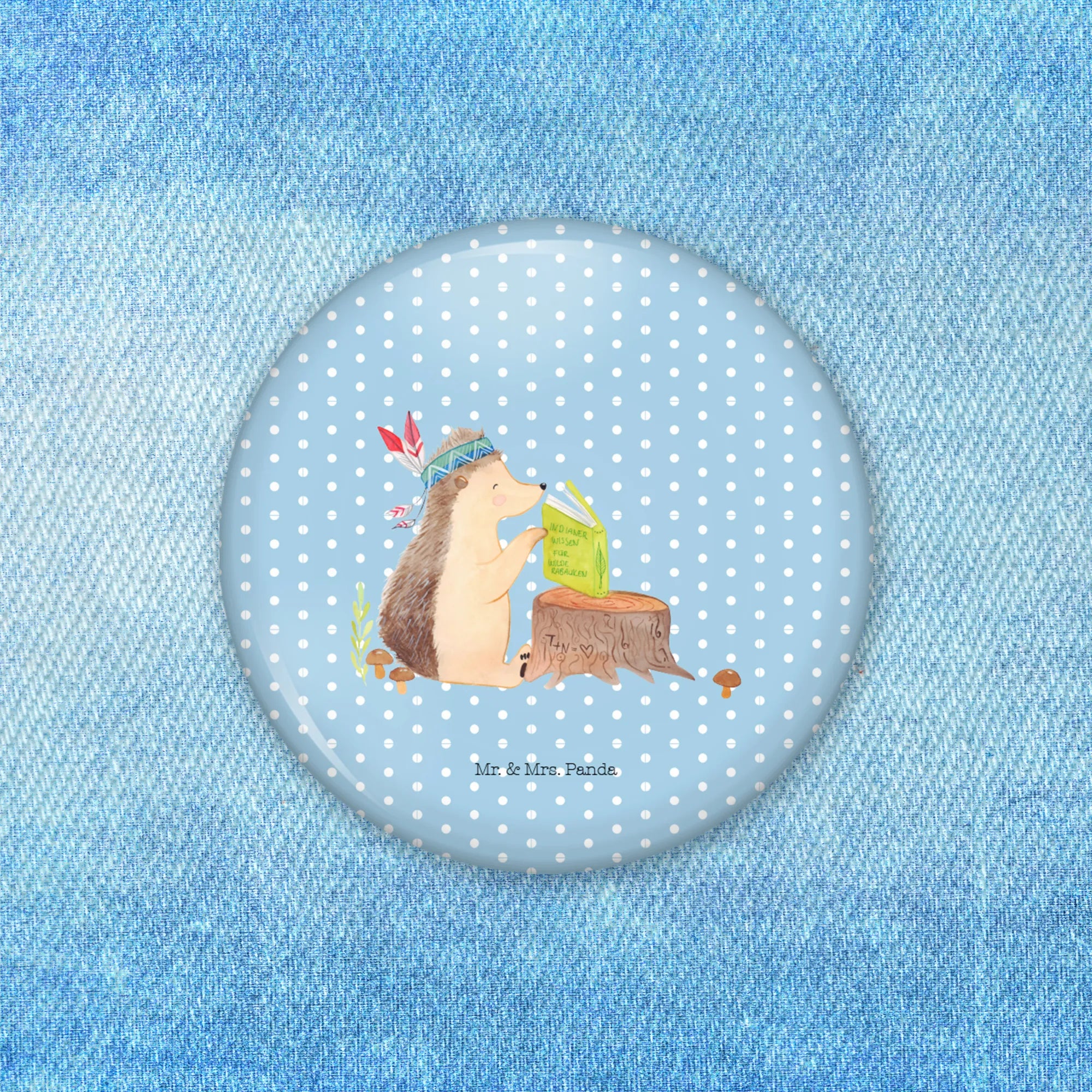 Entdecke den zauberhaften 50mm Button "Igel Indianer" aus der Waldtiere Kollektion von Mr. & Mrs. Panda! Dieser niedliche Anstecker zeigt einen Igel mit federgeschmücktem Kopf, der an einem Baumstumpf sitzt und ein spannendes Abenteuerbuch liest.