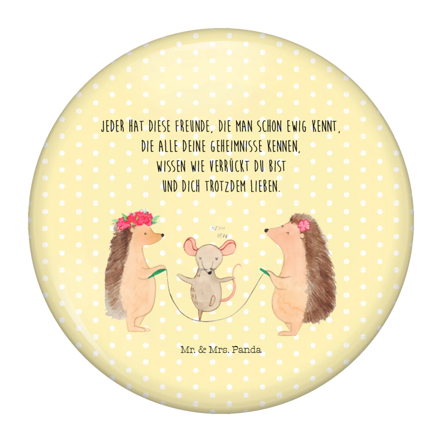 Egal, ob du ihn an einer Jacke, einer Tasche oder einem Rucksack anbringst – der Igel Button sorgt immer für gute Laune. Und der Spruch "Jeder hat diese Freunde, die man schon ewig kennt, die alle deine Geheimnisse kennen, wissen wie verrückt du bist und dich trotzdem lieben" macht ihn zu einem ganz besonderen Accessoire. Dieser Satz spricht große Herzen an und erinnert uns daran, wie wichtig Freundschaften sind, egal in welchem Alter.