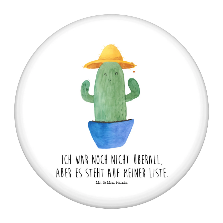 Der Kaktus zeigt sich fröhlich mit einem Sonnenhut und strahlt Lebensfreude aus. Mit dem Spruch "Ich war noch nicht überall, aber es steht auf meiner Liste." weckt dieser Button die Abenteuerlust in jedem, der ihn ansieht. Perfekt für die nächste Weltreise oder einen städtischen Kurztrip!