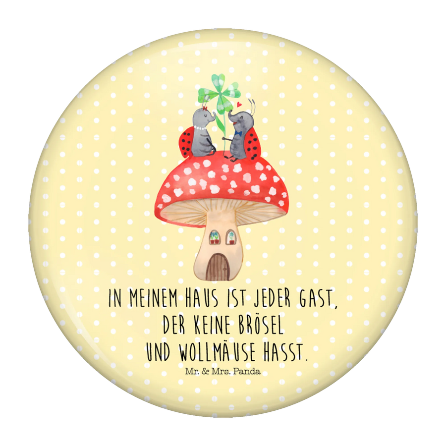 Button Marienkäfer Paar Fliegenpilz - mit Spruch - Gelb Pastell
