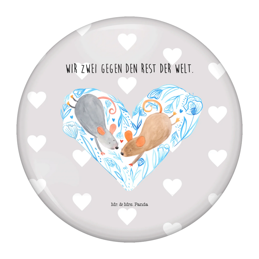 Der 50mm Button Mäuse Herz aus der liebevollen Kollektion von Mr. & Mrs. Panda ist das perfekte Geschenk für alle, die die Zweisamkeit und die Liebe feieren möchten! Mit seinem bezaubernden Motiv von zwei niedlichen Mäusen, die in Form eines Herzens zusammenkommen, spricht dieser Button ganz besondere Herzen an. Er bringt die süßeste Liebesbotschaft: "Wir zwei gegen den Rest der Welt". Ideal für Verliebte, die ihren Lieblingsmenschen beschenken möchten, eignet er sich bestens als Liebesgeschenk zum Jahrestag, zur Verlobung, Hochzeit oder einfach nur, um seine Zuneigung zu zeigen.
