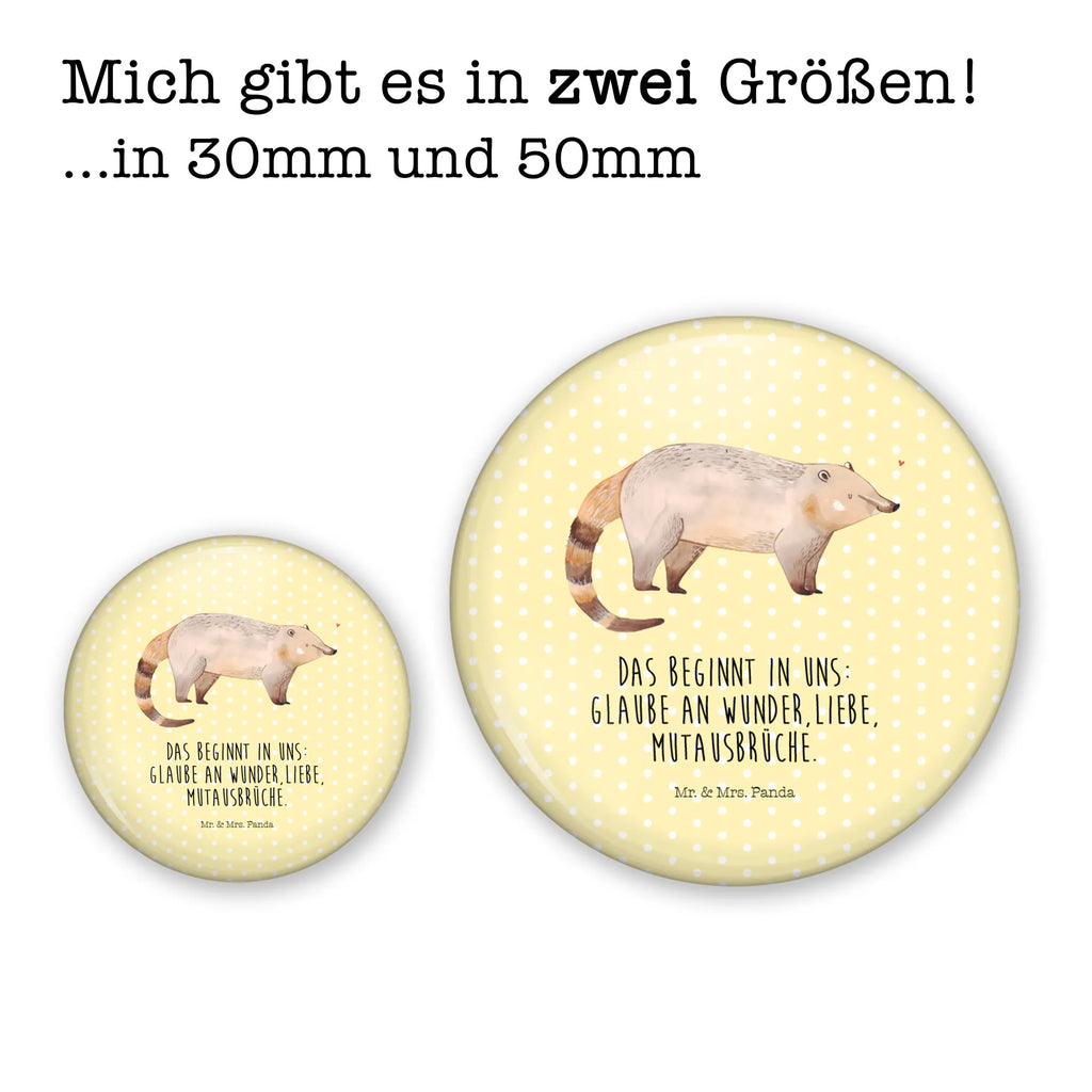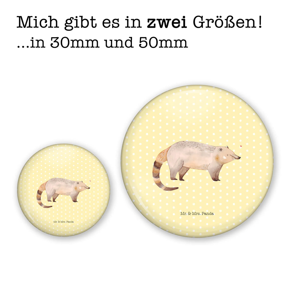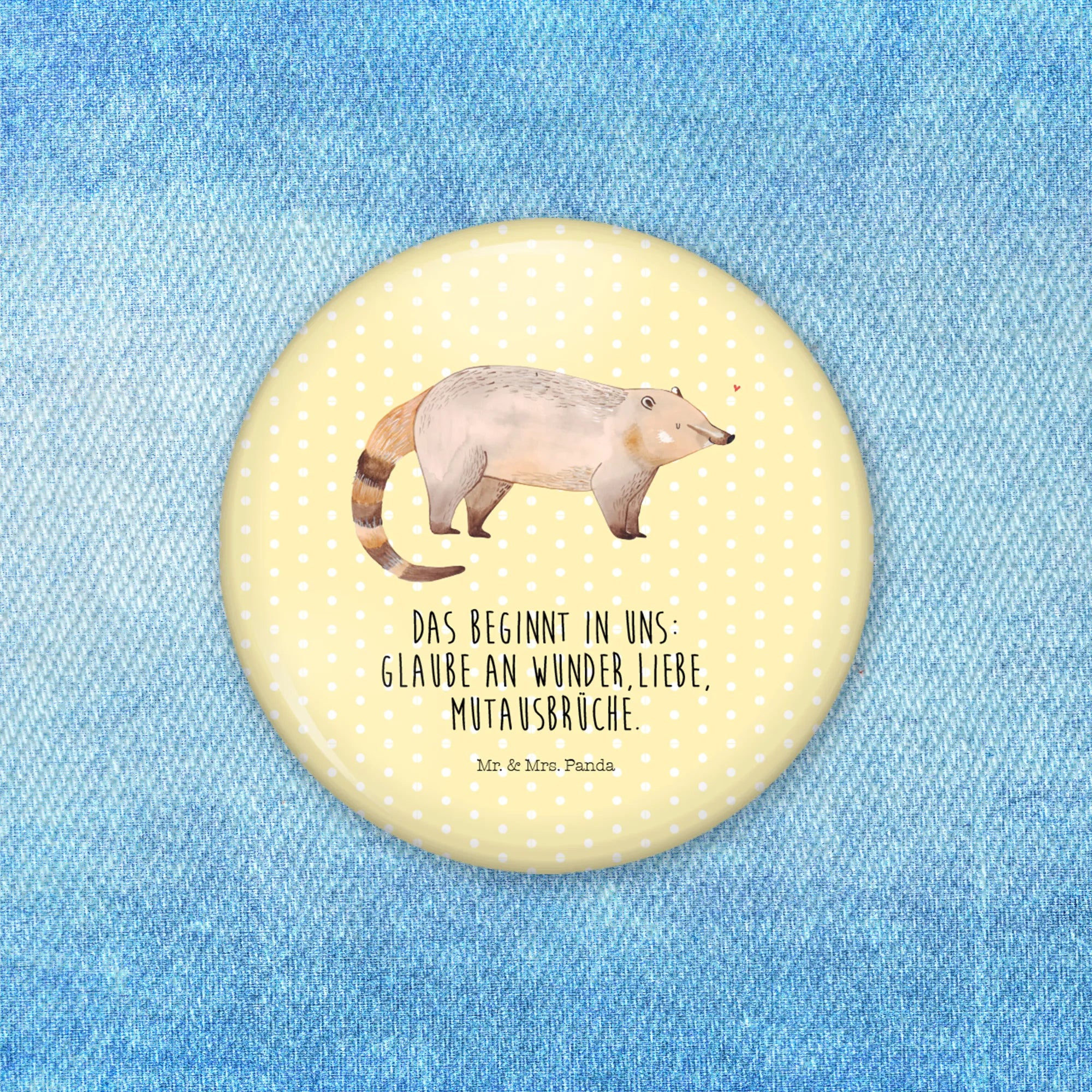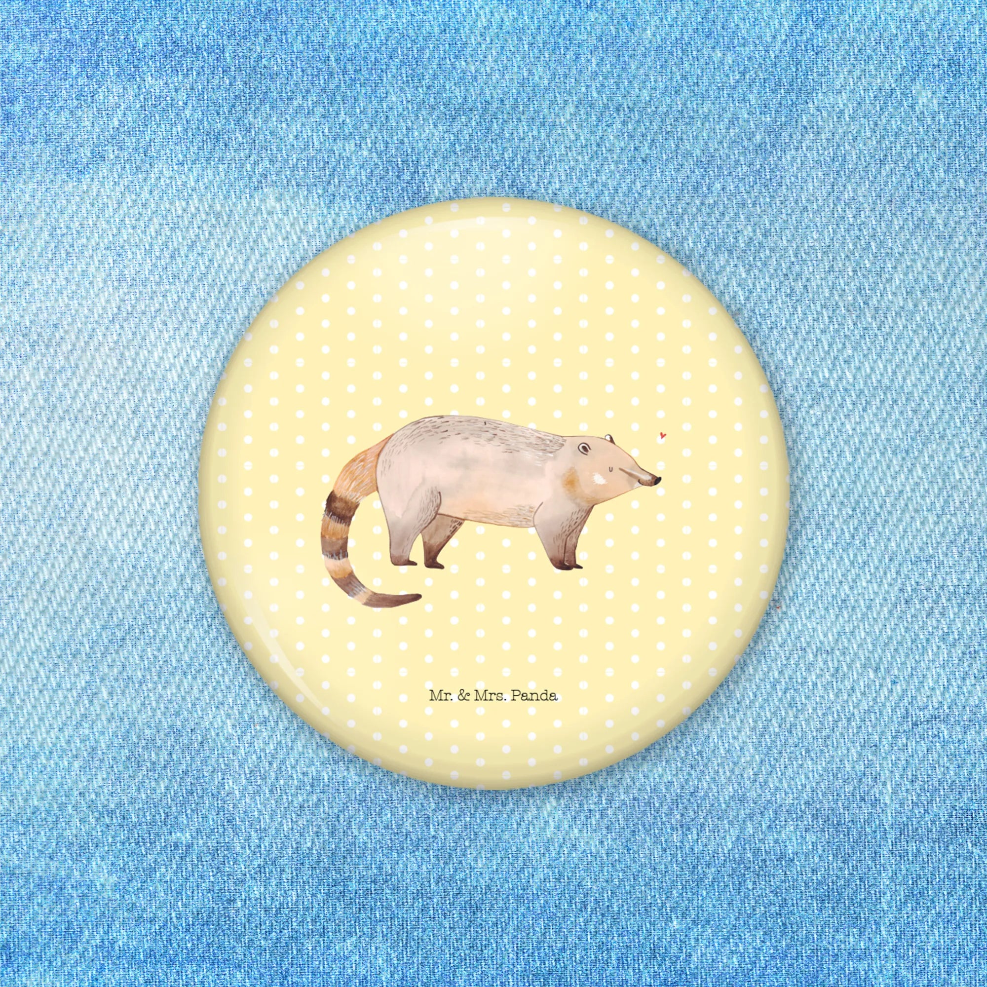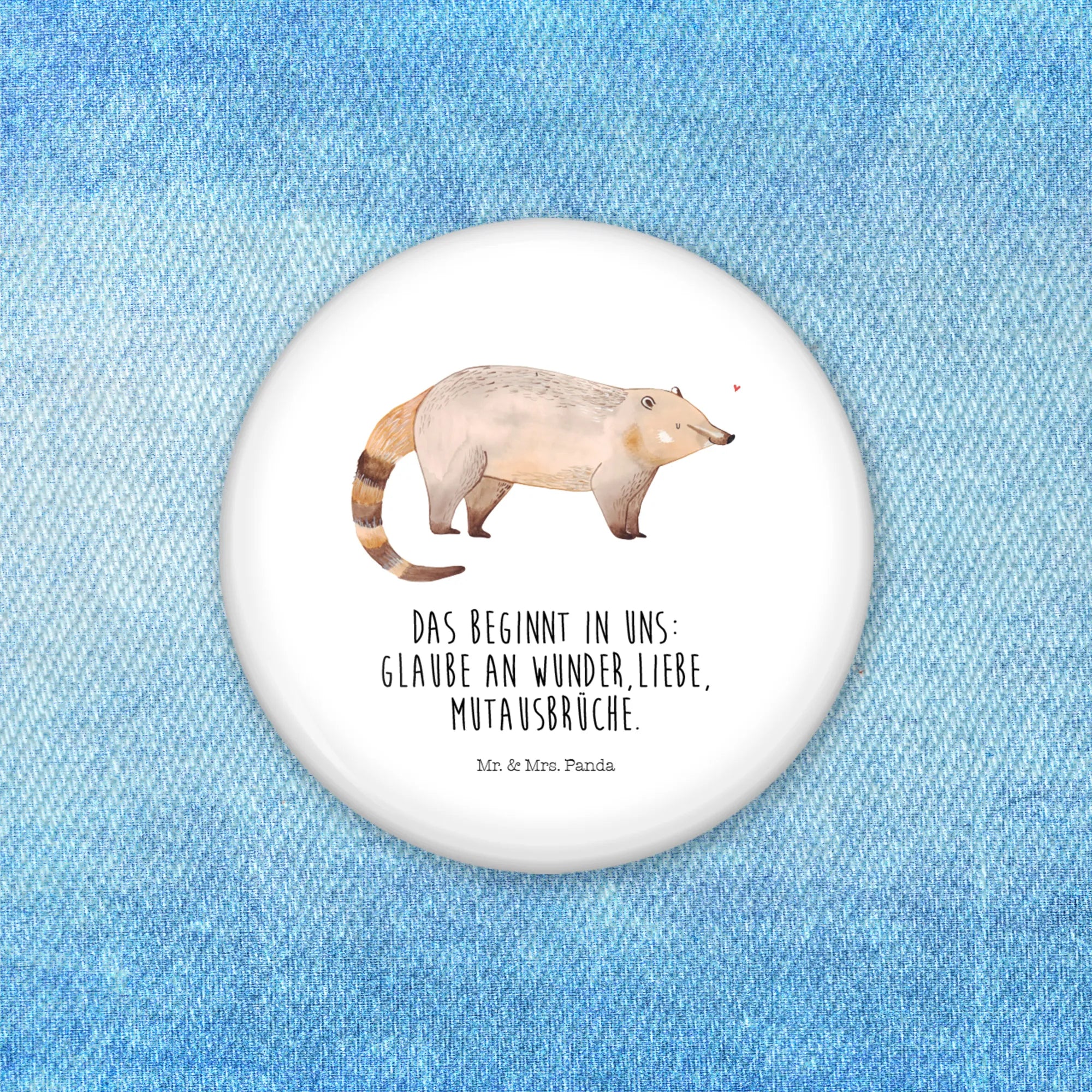 Entdecke unseren charmanten 50mm Button mit dem niedlichen Nasenbär-Motiv aus der Small World Kollektion von Mr. & Mrs. Panda! Dieser Button ist nicht nur ein wunderschönes Accessoire, sondern auch ein perfektes Geschenk für Tierliebhaber, Jung und Alt. Der kleine Nasenbär verzaubert mit seinen großen, neugierigen Augen und seiner verspielten Art.
