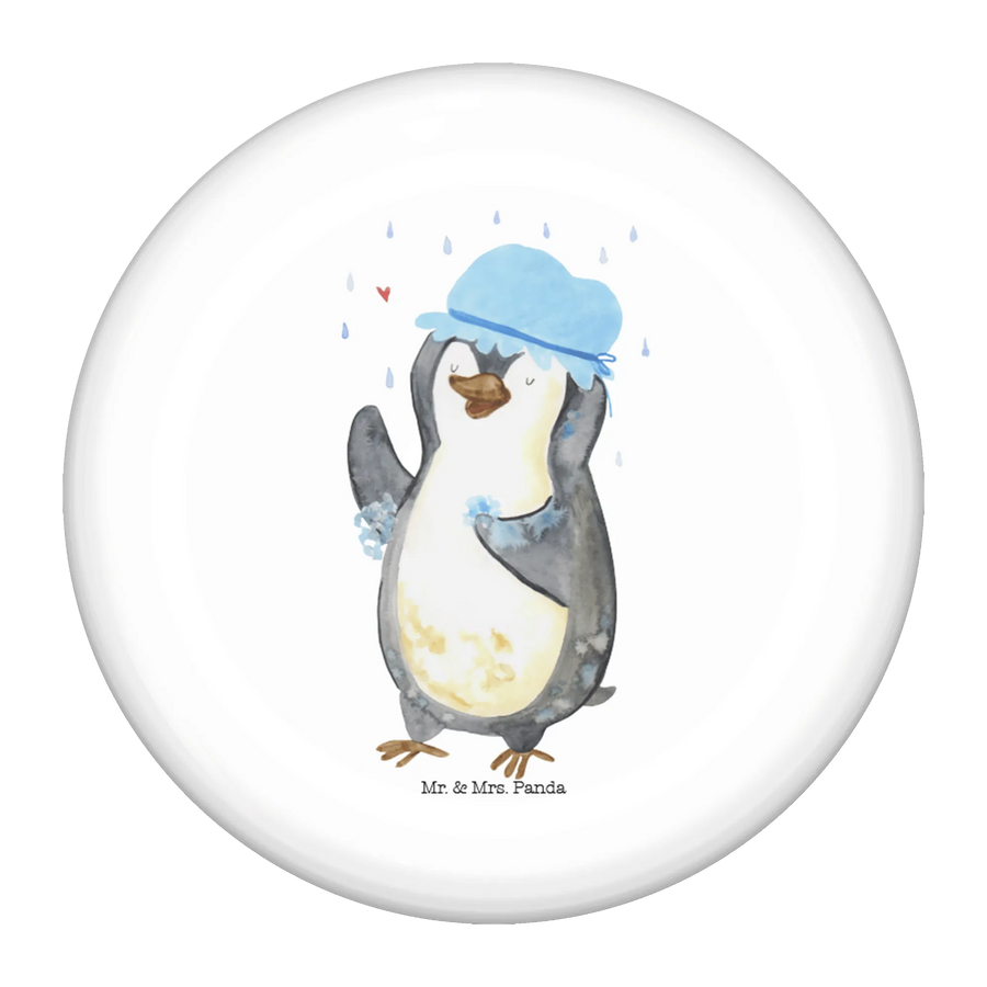 Verschenke Freude, Motivation und einen Hauch von Lebensfreude mit dem 50mm Button "Pinguin duscht" und bringe frischen Wind in den Alltag deiner Freunde oder Familie! 💕