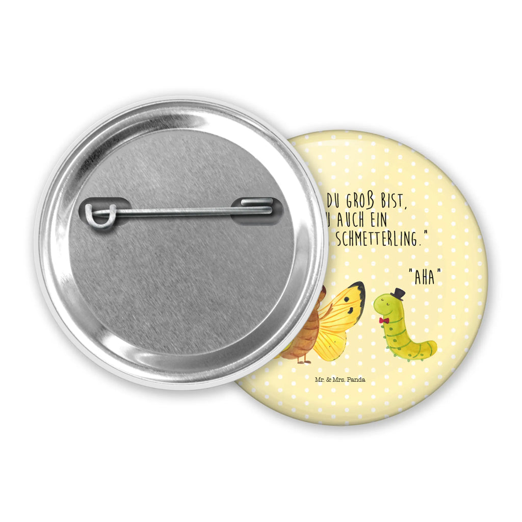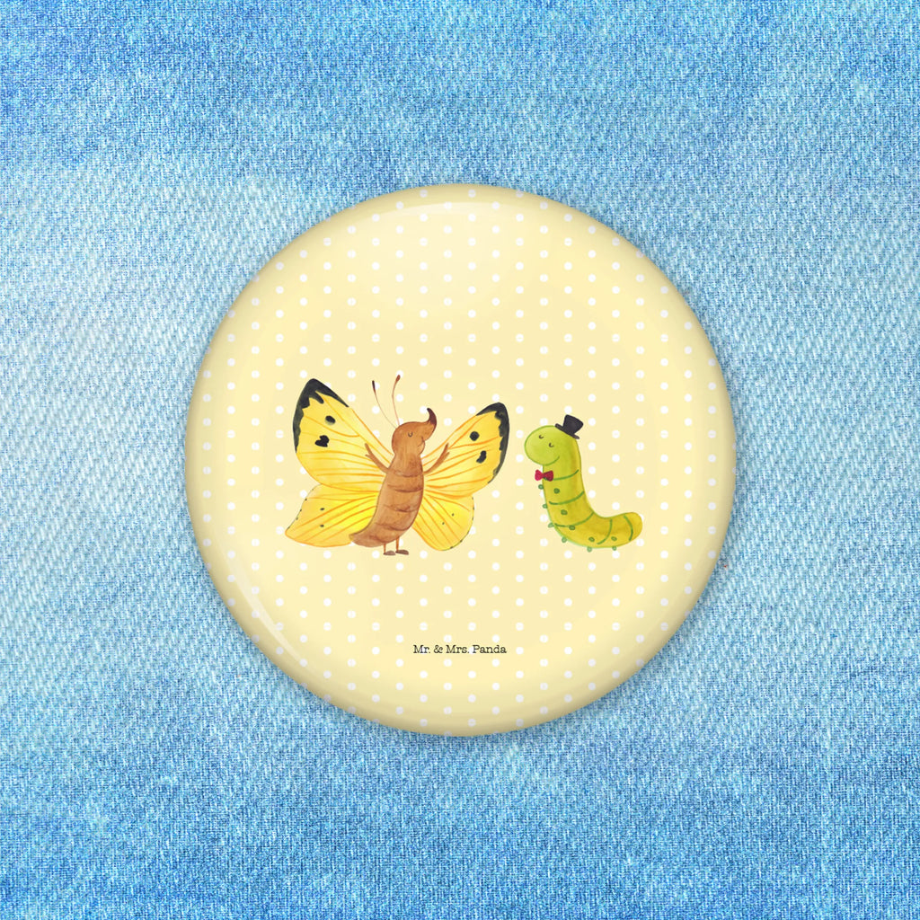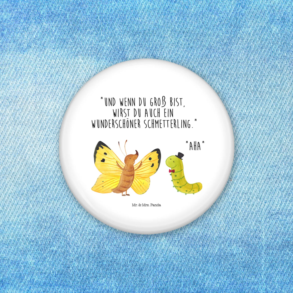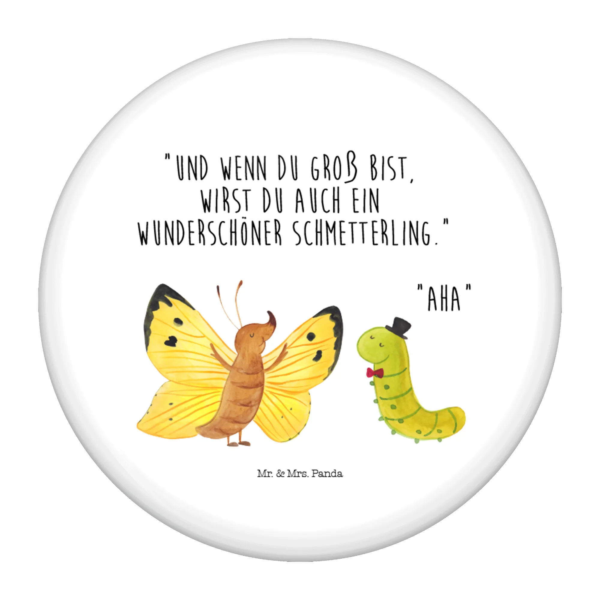 Entdecke die Freude an der Transformation und hol dir jetzt deinen 50mm Button mit der süßen Raupe und dem strahlenden Schmetterling aus der Small World Kollektion von Mr. & Mrs. Panda!