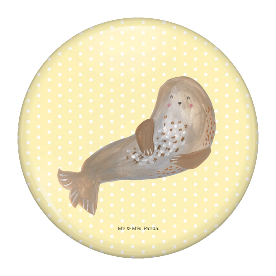 Button Robbe lachend - ohne Spruch - Gelb Pastell