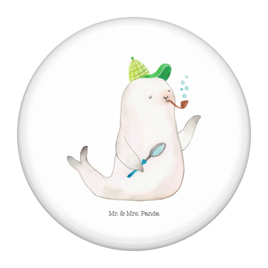 Der 50mm Button mit dem niedlichen Motiv der Robbe Sherlock aus der Small World Kollektion von Mr. & Mrs. Panda ist das perfekte Geschenk für all jene, die eine Vorliebe für lustige Sprüche und Tiermotive haben!