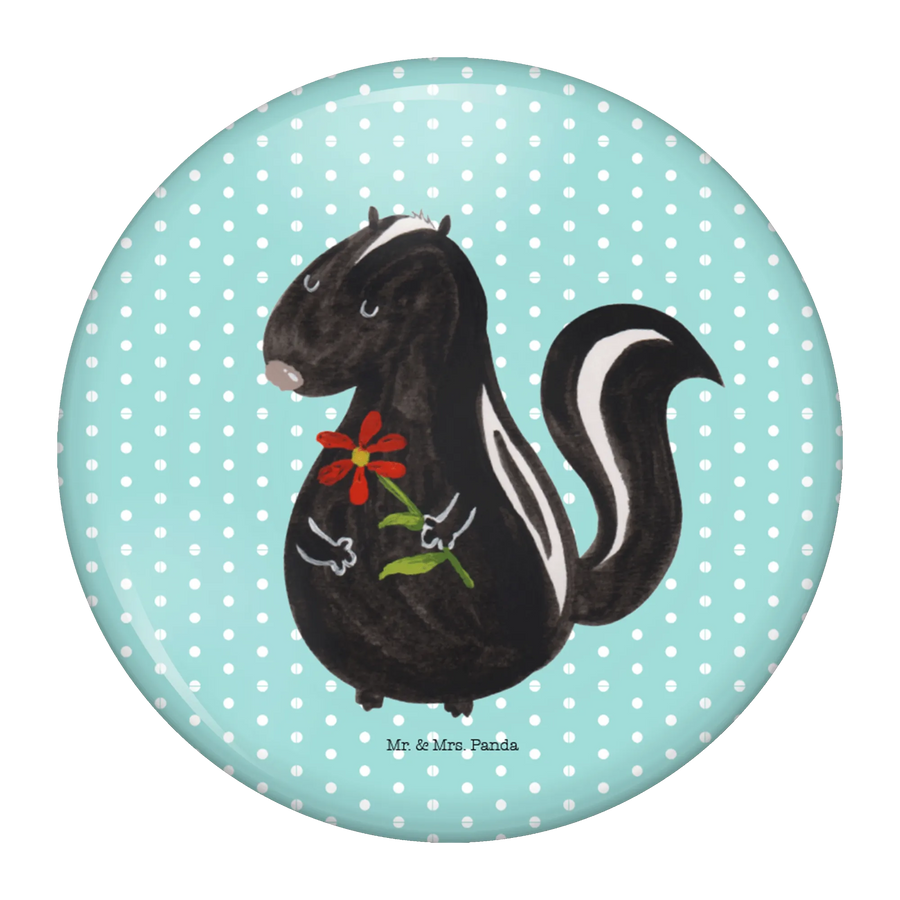 Der 50mm Button mit dem wunderschönen Motiv Stinktier Blume von Mr. & Mrs. Panda ist das ideale Geschenk für alle, die das Besondere lieben!