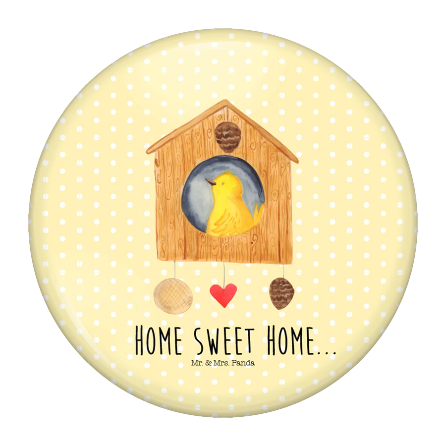 Button Vogelhaus sweet Home - mit Spruch - Gelb Pastell