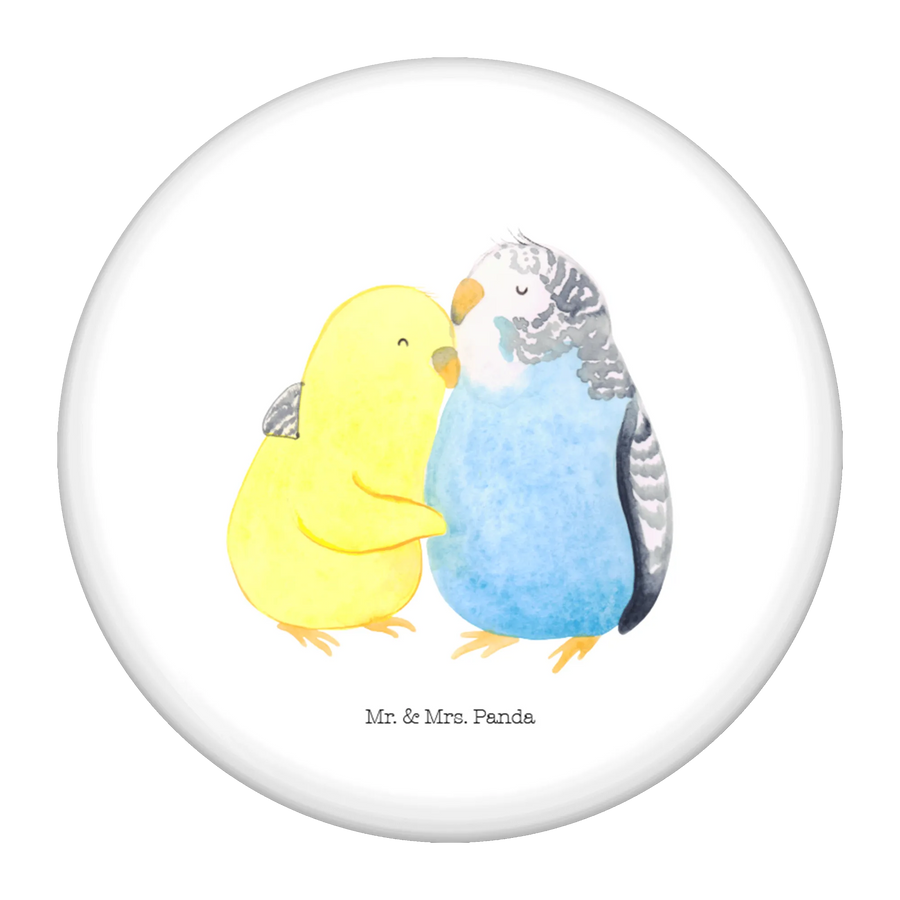 Der 50mm Button "Wellensittich Liebe" aus der bezaubernden Liebe Kollektion von Mr. & Mrs. Panda ist das perfekte Geschenk für alle Verliebten und Vogelliebhaber! Dieses charmante Accessoire ziert ein wunderschönes Motiv von zwei kuschelnden Wellensittichen, die innig miteinander verbunden sind.