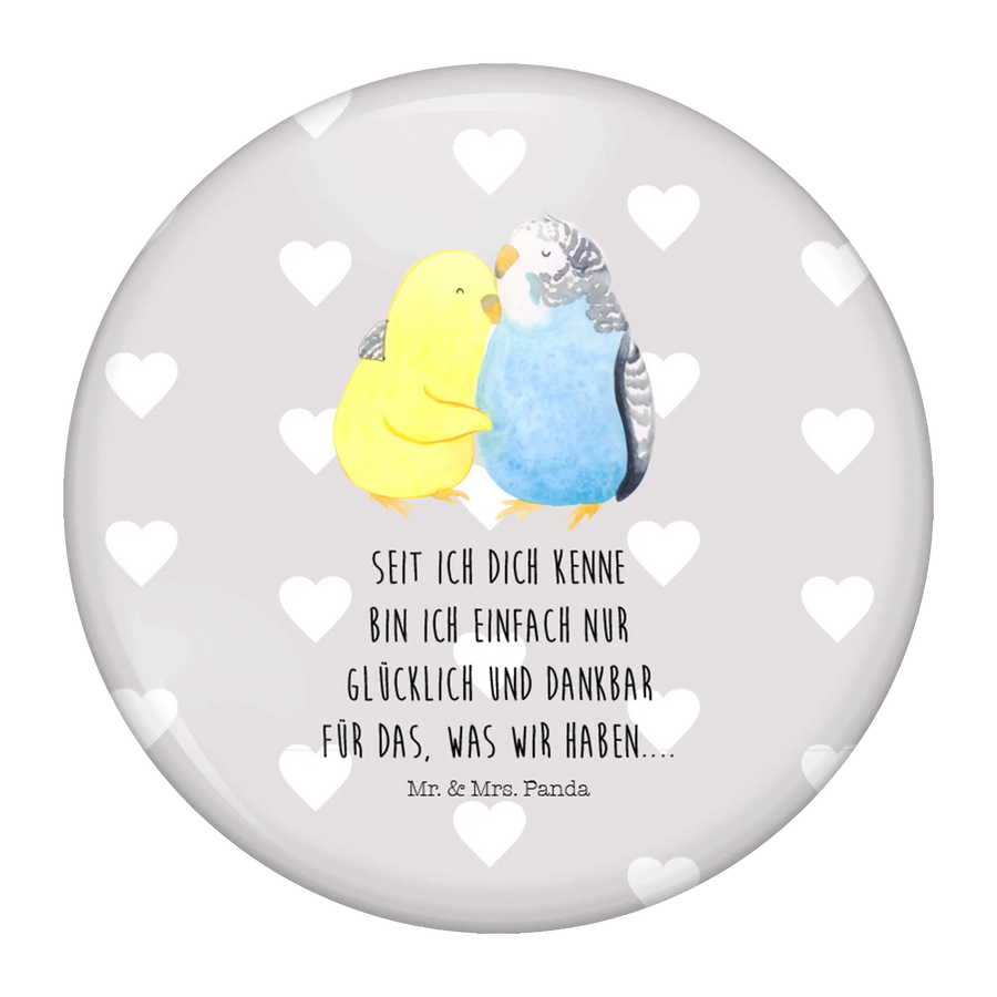 Button Wellensittich Liebe - mit Spruch - Grau Pastell