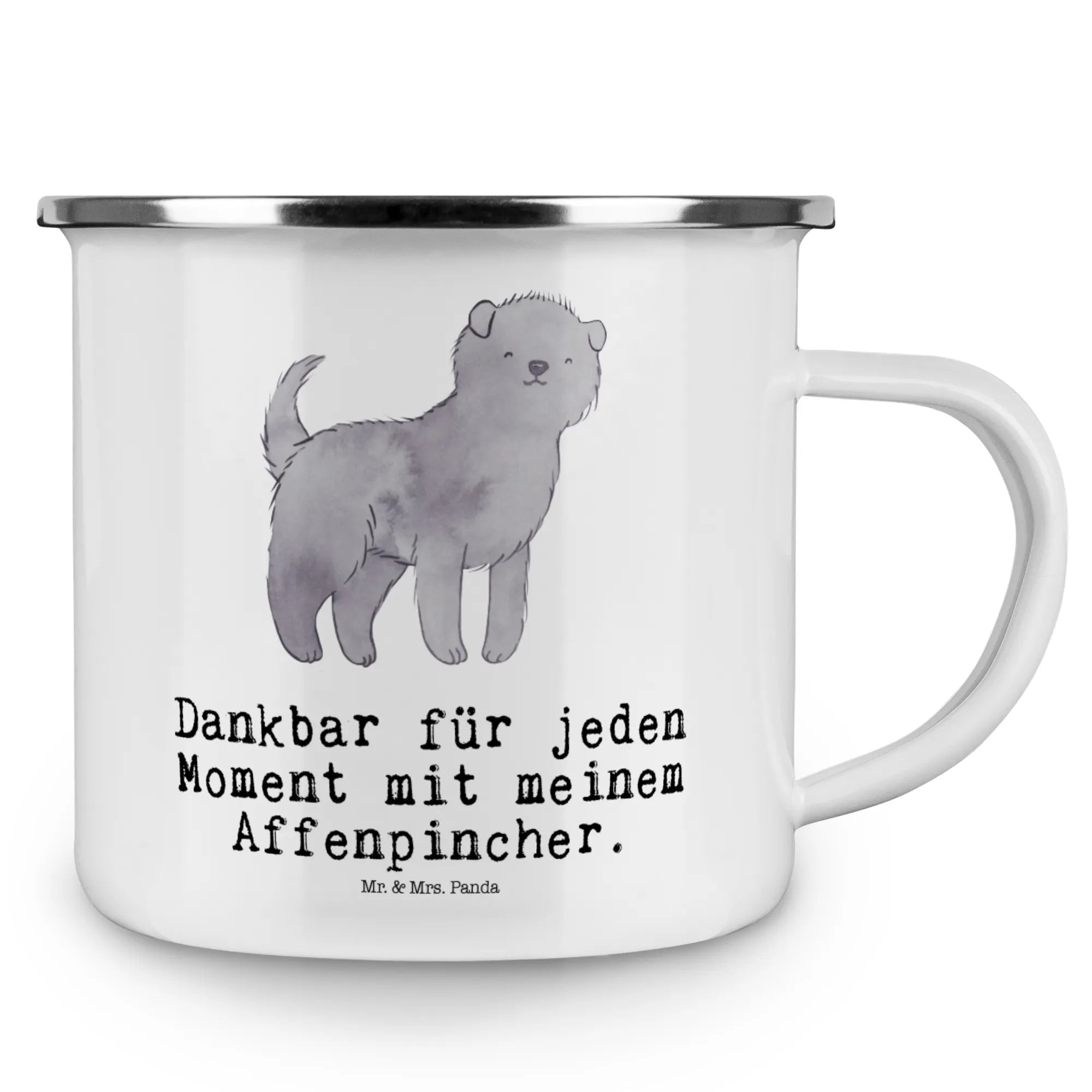 Die Camping Emaille Tasse "Affenpincher Moment" von Mr. & Mrs. Panda ist das ideale Geschenk für Hundeliebhaber und Abenteuerlustige.